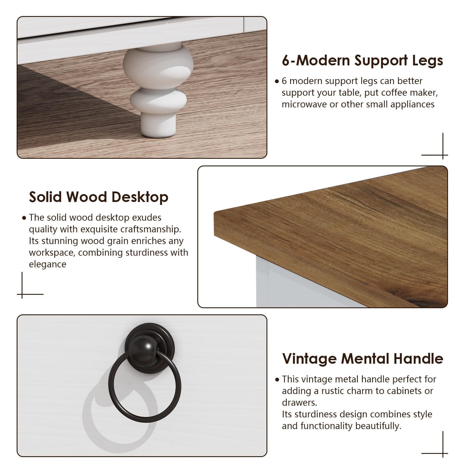 • Modern Buffet Cabinet: Kitchen cabinets with countertop features a modern design that complements the interior decor. Rustic walnut tabletop and vintage metal handles, white buffet cabinet adds a touch of elegance to your space and enhances overall aesthetic appeal