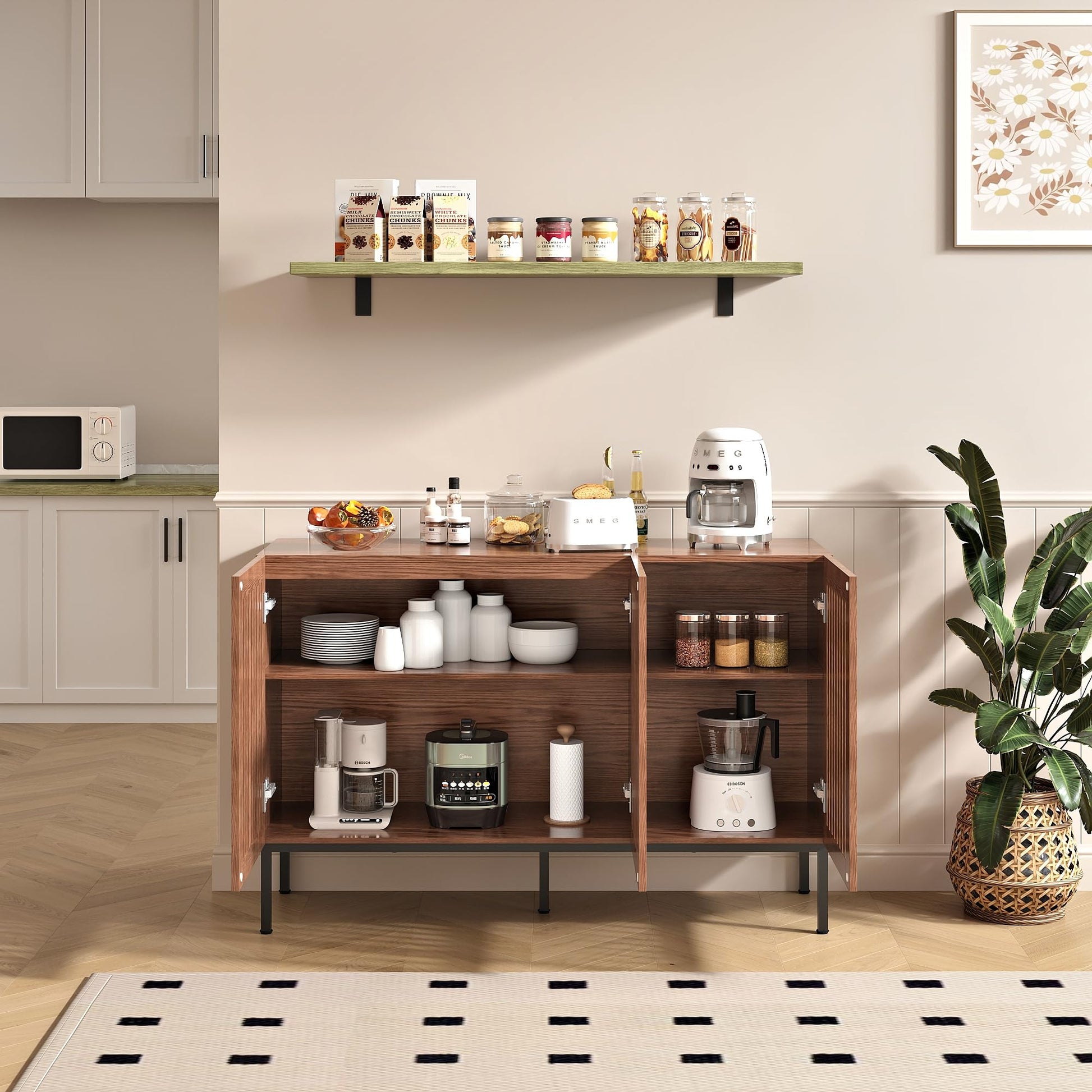 **47" Buffet Cabinet, Modern Credenza Storage Cabinet with Adjustable Shelves and Metal Base, Wood Multifunctional Console Table for Kitchen, Living Room, and Entryway, Brown**