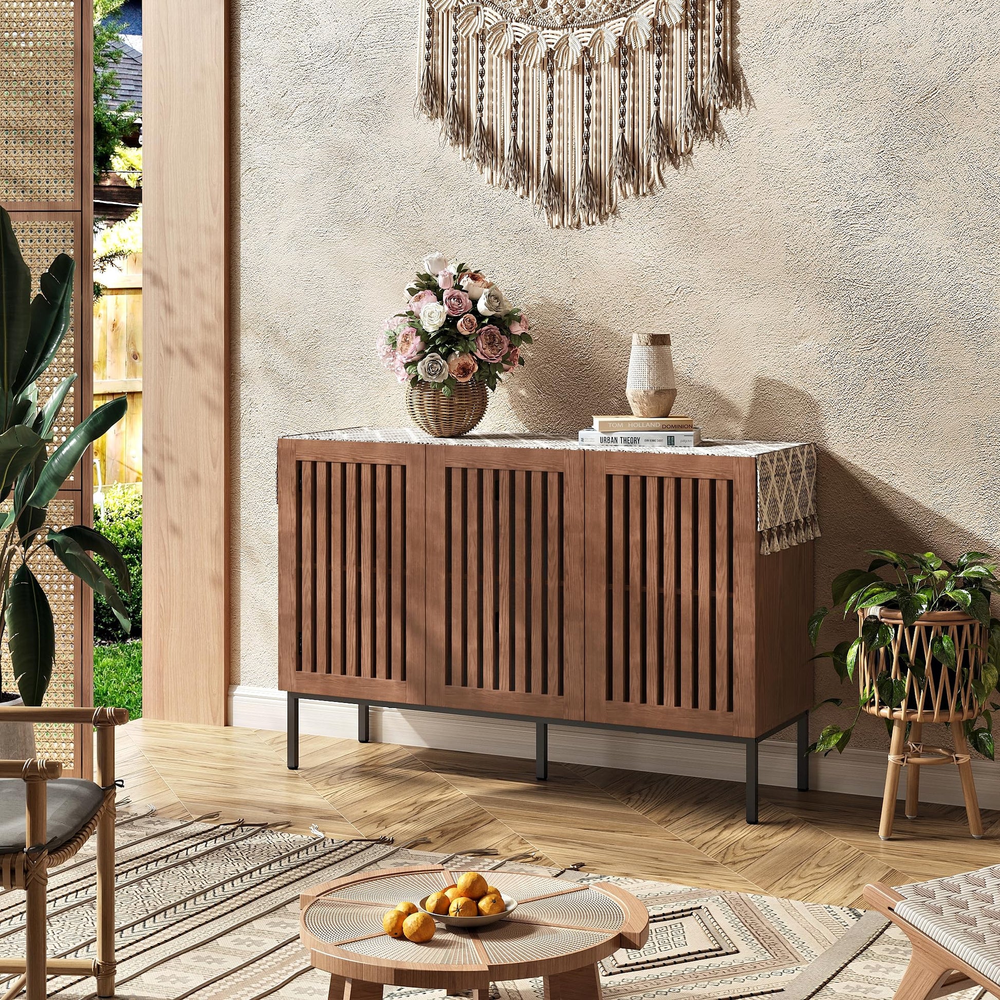 - Unique Design: The 47.2-inch brown storage cabinet combines natural style with modern elegance. The grille-striped doors and clean lines make it an ideal addition to any home decor, whether you're decorating your kitchen, dining room, or living room
