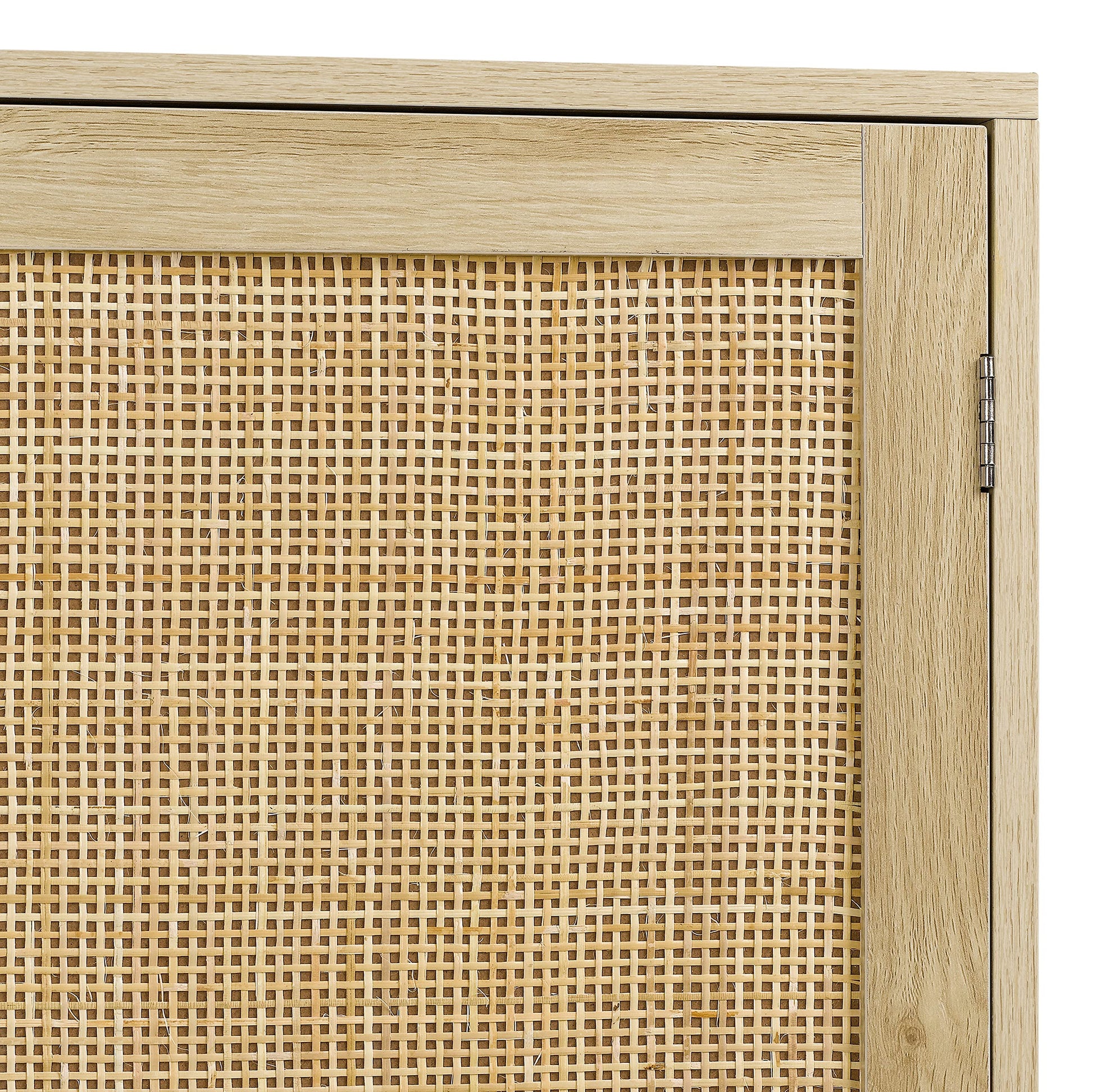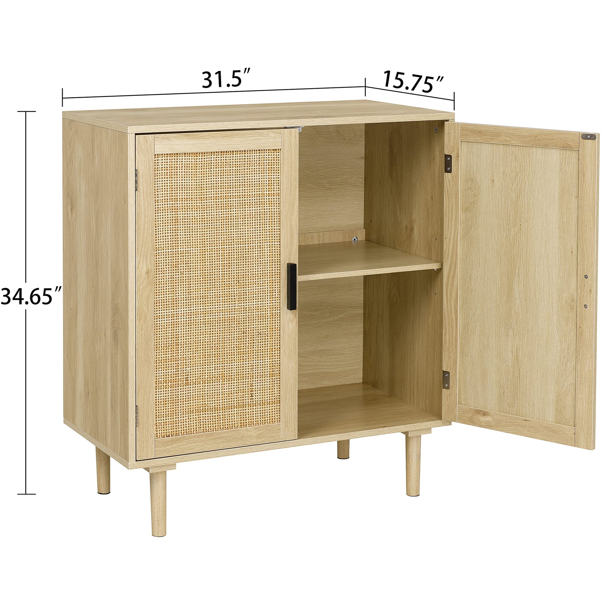 - 【MULTIFUNCTIONAL CABINET】 - All-purpose storage cabinet can meet your various storage needs as a sideboard or buffet server cupboard in dining room or kitchen. Waterproof paint on the cabinet surface with natural rattan decorated door can effectively prevent moisture so it can also used as a bathroom floor cabinet. The classic boho style cabinet and wood color doors combined retro and modern, it can be suitable for various styles of home decoration, adding a touch of unadorned elegance to your space.
