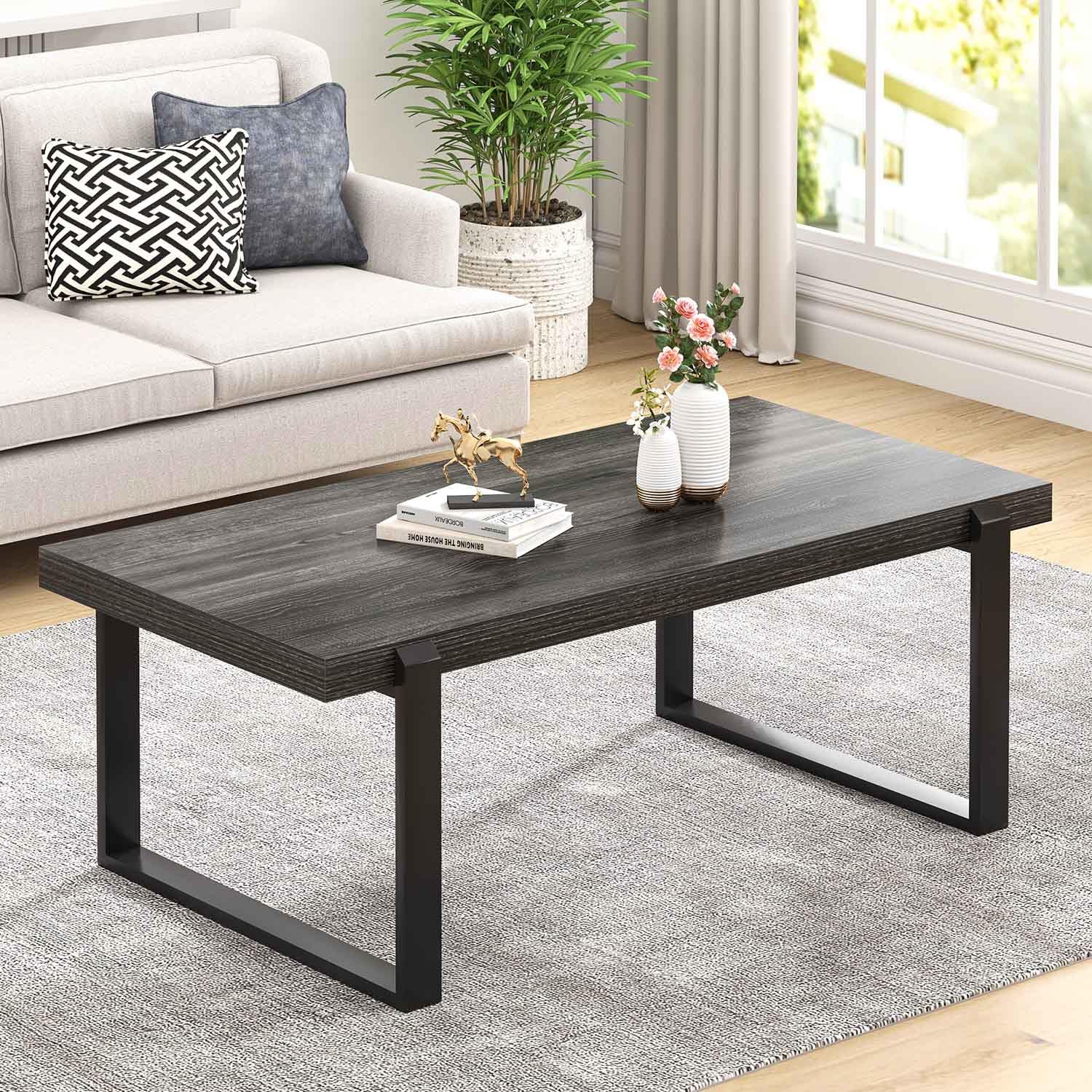 - Minimalist Elegance: This coffee table embodies modern design with its simple clean lines and dark grey wood grain surface. Its modern look complements various decor styles, from contemporary to industrial, offering a rustic touch to any space