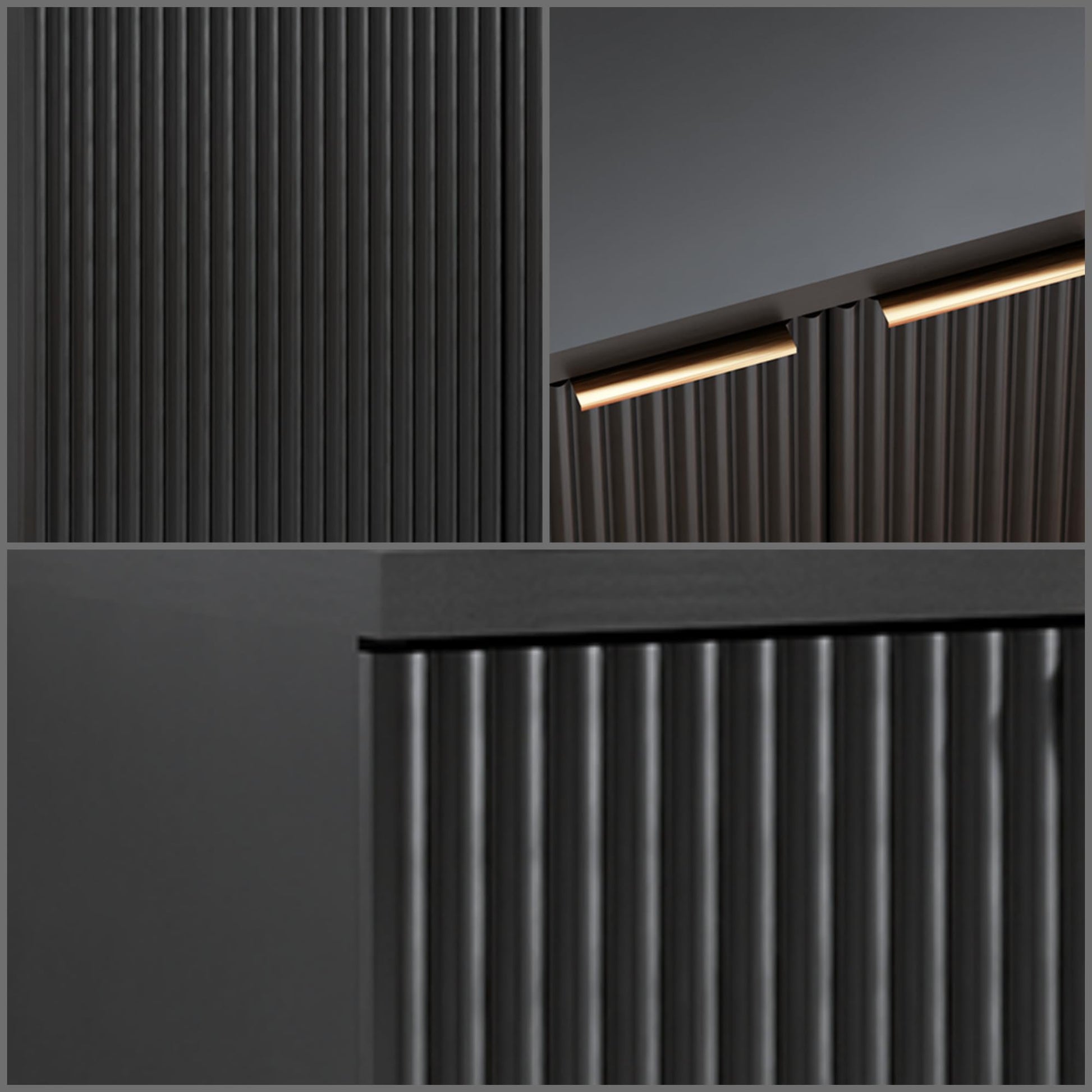 Fluted Buffet Cabinet with Doors and Shelves, Modern Wood Sideboard Coffee Bar Storage for Kitchen, Dining, and Living Room, Black