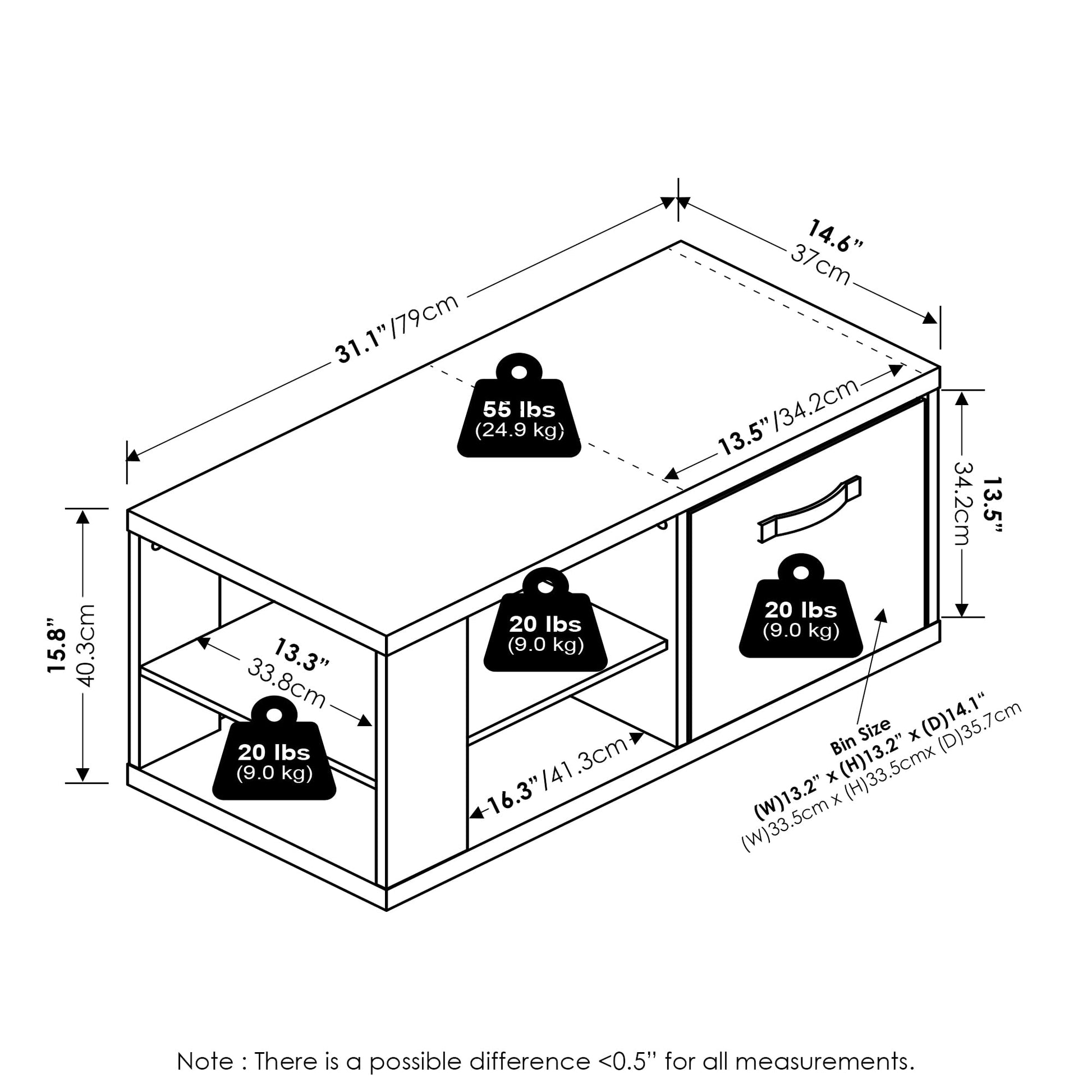 • Includes a 13" x 13" non-woven fabric bin that fits standard cube storage dimensions, perfect for concealing clutter or organizing loose items.