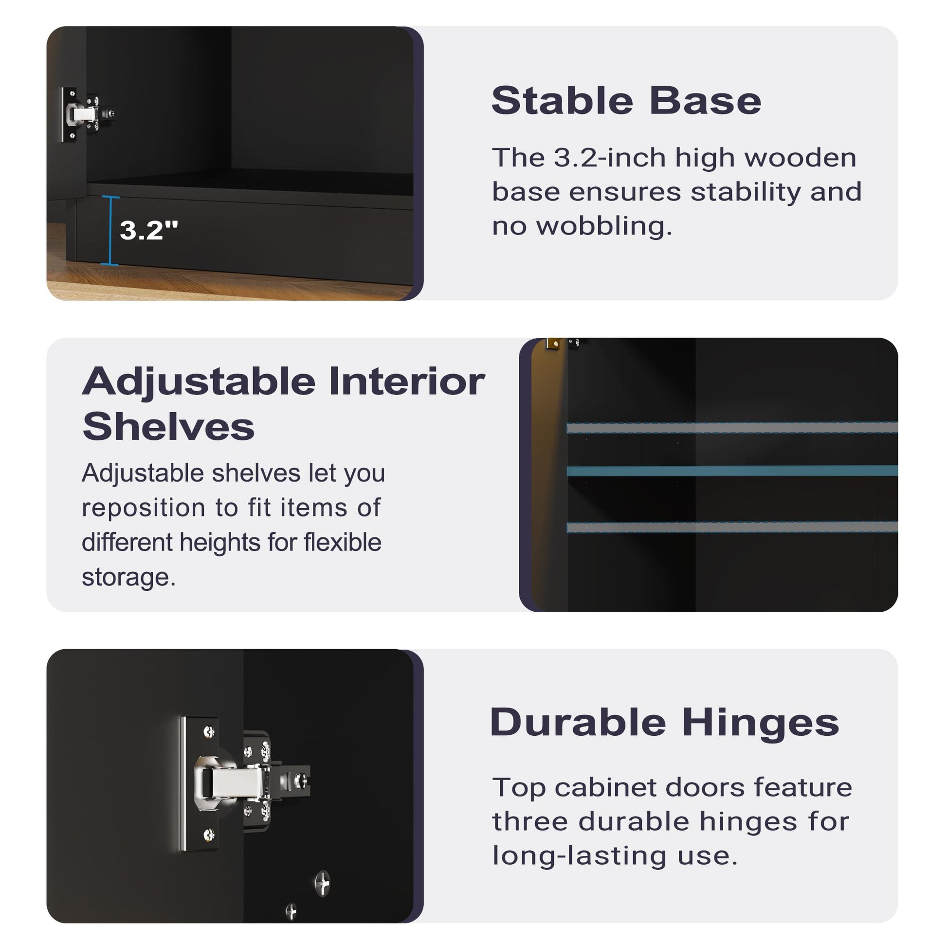 - 【Durable & Stable Construction】 - Crafted from CARB/EPA certified sturdy wood, this cabinet ensures exceptional stability and long-lasting durability for everyday use. The included wall anchor kit prevents tipping for safety