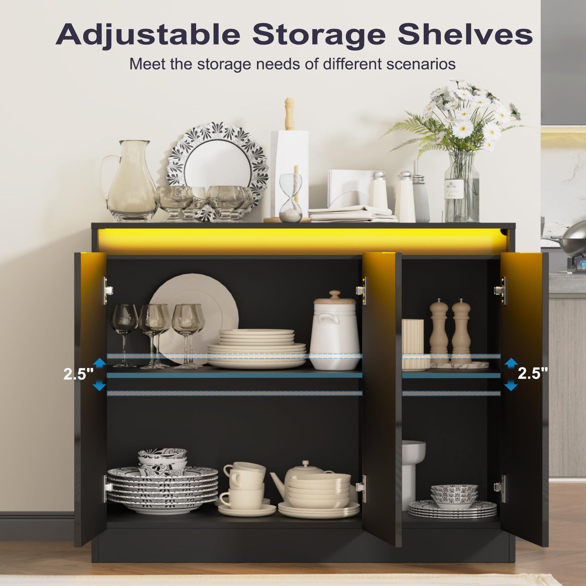 - 【Multifunctional Cabinet】- This versatile LED-lit cabinet effortlessly adapts to your space and lifestyle. Use it as a stylish coffee bar for morning brews, a sleek TV stand for entertainment nights, a spacious kitchen buffet for hosting, or a modern storage solution in your dining room, living area, or even home bar. Wherever you place it, this all-in-one storage piece combines smart organization with customizable ambiance lighting to perfectly suit your needs