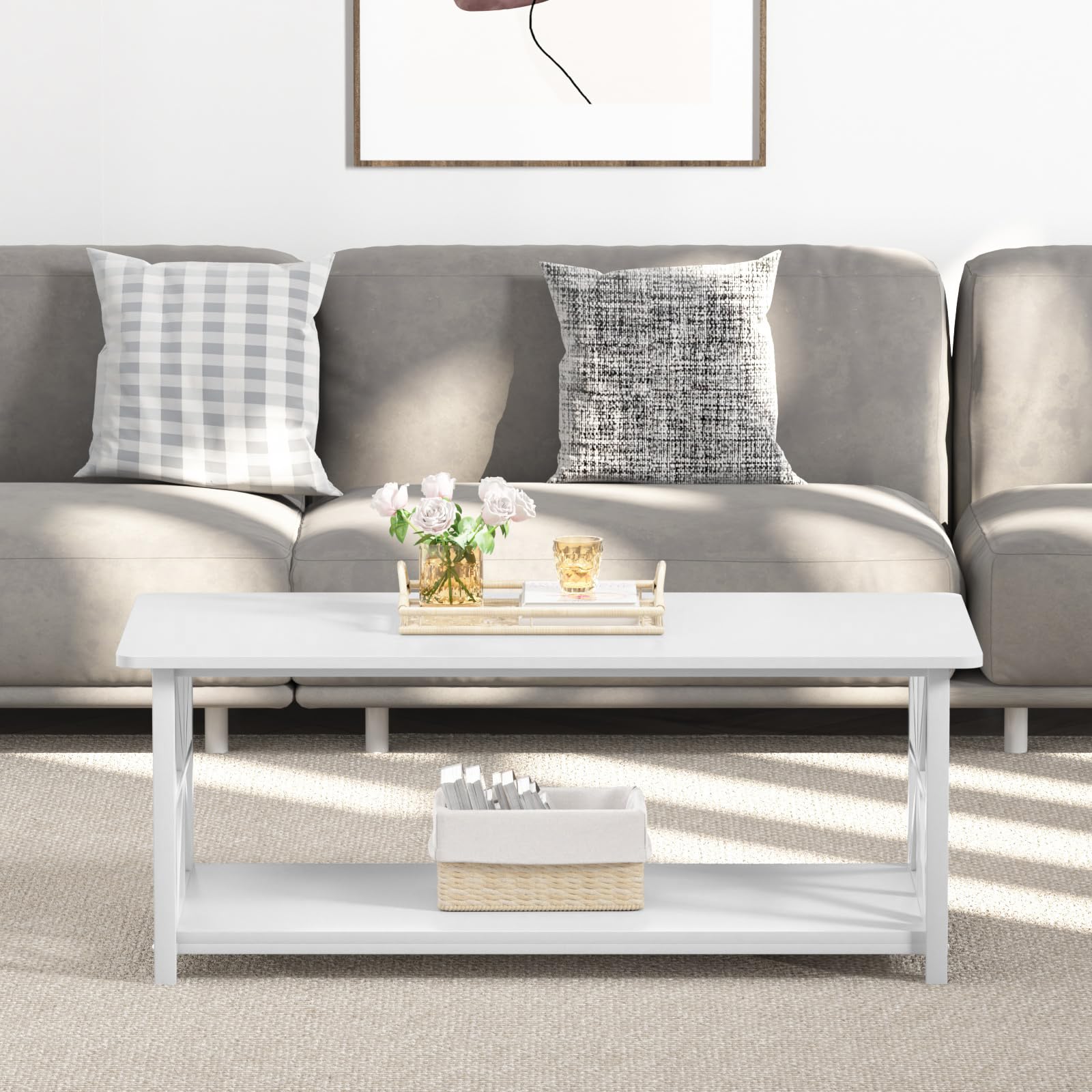 GreenForest 39" Coffee Table for Living Room with Round Corners, Farmhouse Style Center Table with 2-Tier Storage Shelf, Space-Saving & Easy Assembly, Full White