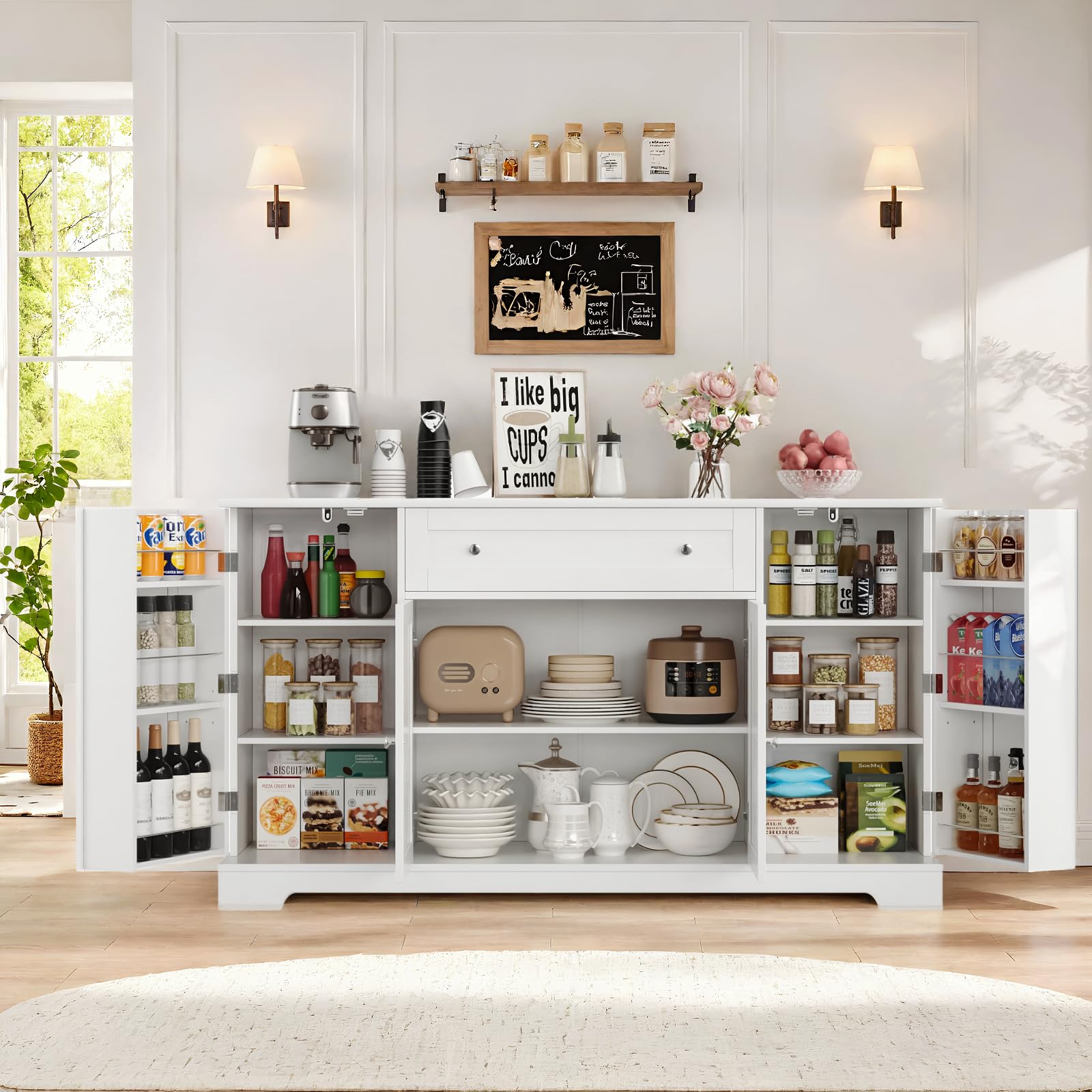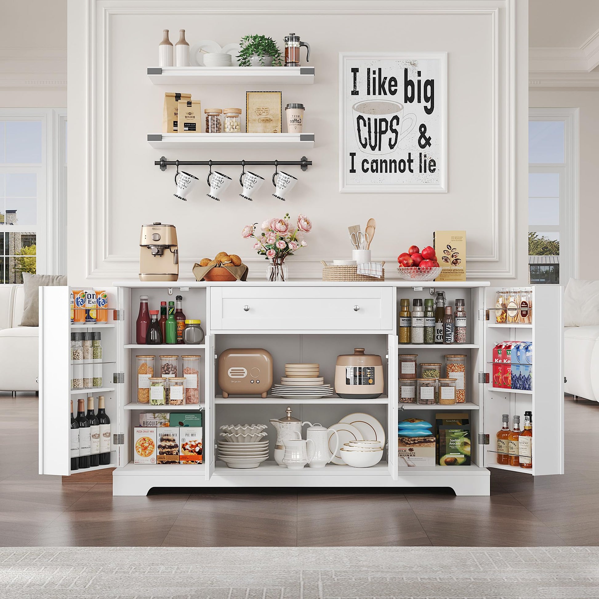 **HITHOS 54" Modern Buffet Cabinet with Storage, White Kitchen Sideboard with Drawer, Wood Coffee Bar Station with Adjustable Shelves for Living Room**