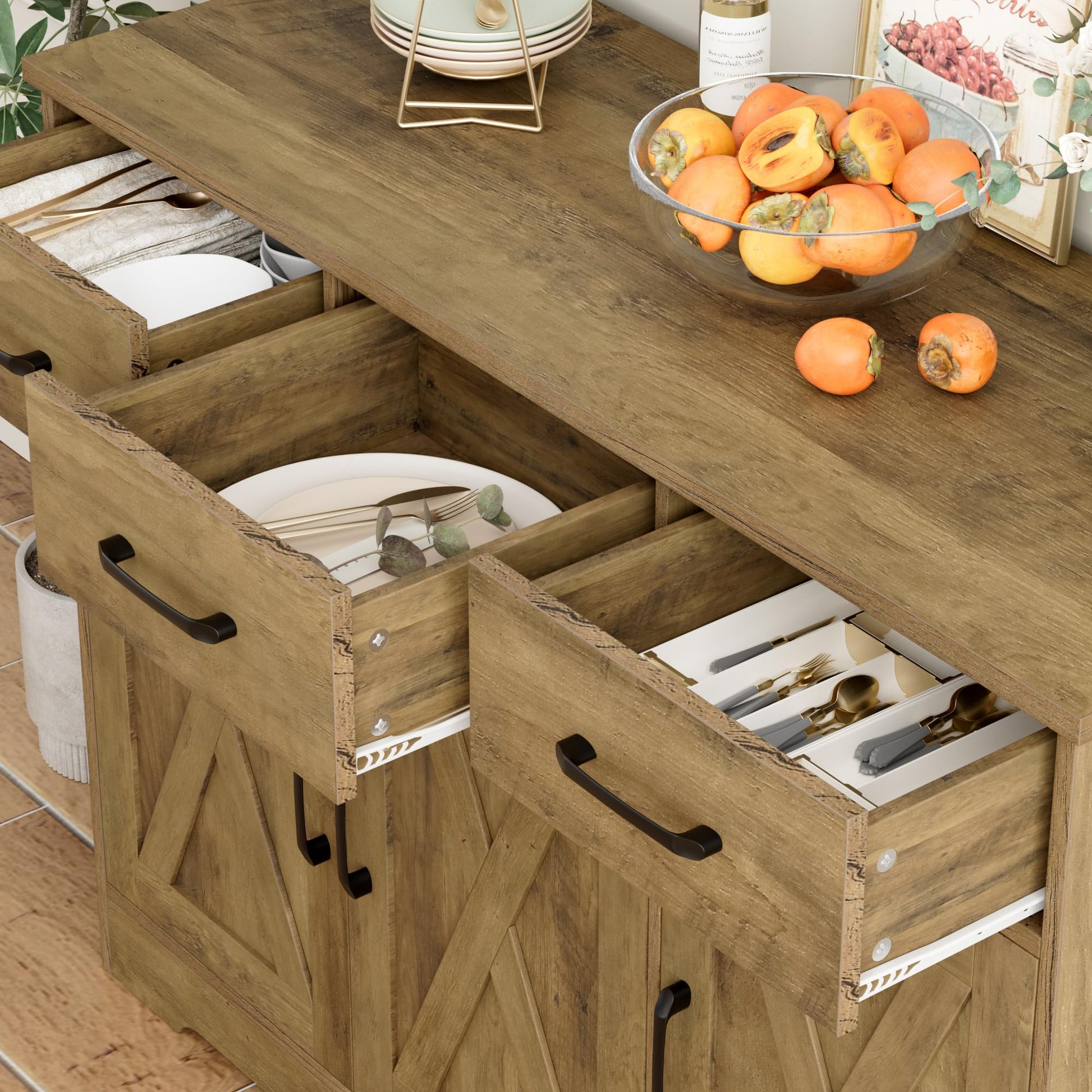 **HOSTACK Modern Farmhouse Buffet Sideboard Cabinet with Barn Doors, Drawers, and Shelves, Wood Coffee Bar Station for Dining Room, Kitchen, or Living Room, Rustic Brown**