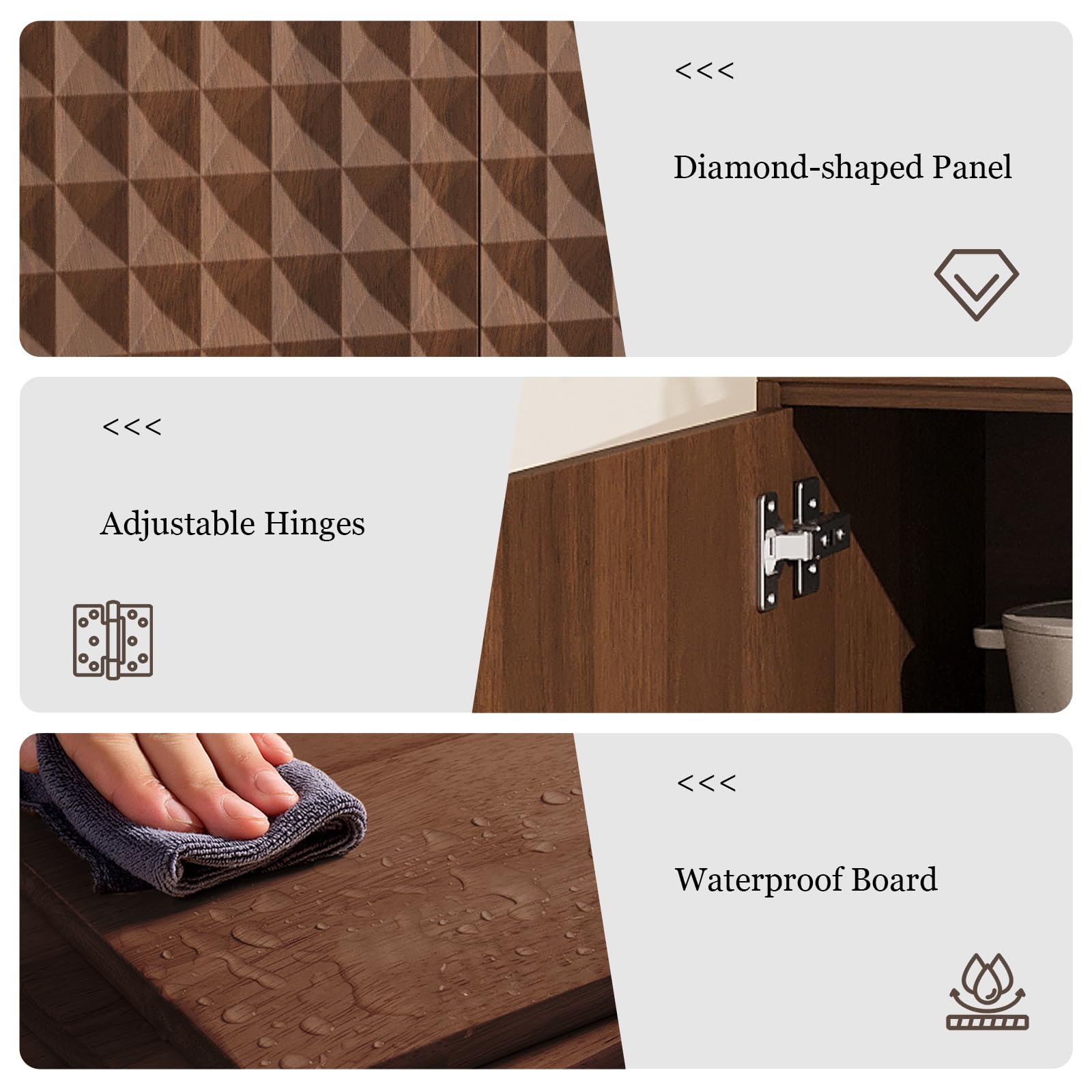 - CRAFTMANSHIP DESIGN: Boasting a smooth surface and vibrant color, this sideboard buffet cabinet with storage features panels crafted with high-quality plastic absorption technology, offering versatility to suit a wide range of design styles. Each panel is adorned with an intricately designed diamond pattern, adding visual depth and a touch of contemporary elegance to any interior. The finely cut surfaces of the pattern catch the light beautifully, filling the space with dynamic reflections and a sense of luxurious brilliance.