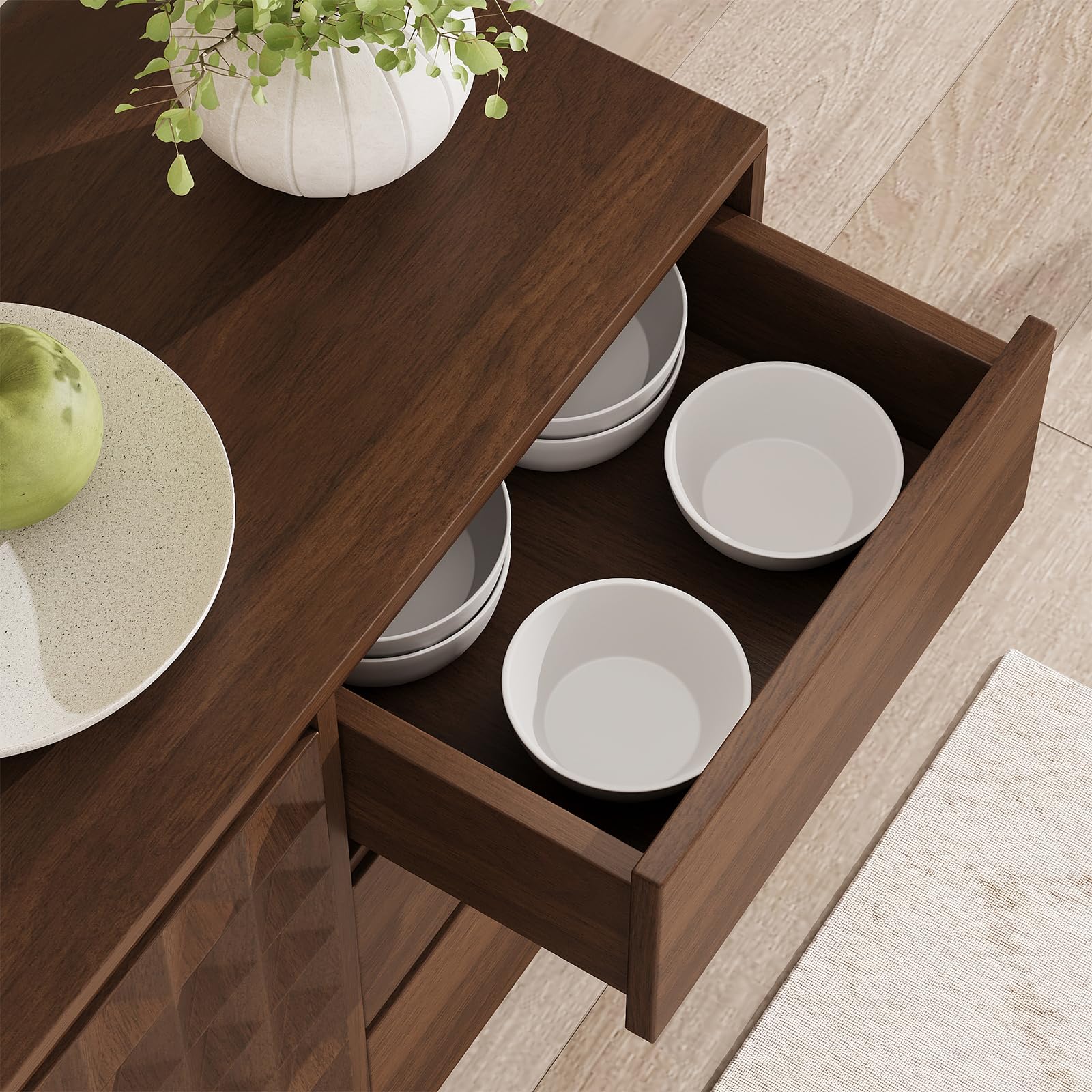 - LARGER STORAGE SPACE: This versatile buffet cabinet offers both style and function to keep any room tidy. Two doors provide ample concealed storage for your essentials, while a pair of adjustable interior shelves allow space for items of various sizes. Additionally, three drawers help keep smaller belongings neatly organized and within easy reach. Perfect for the dining room, living area, or hallway, this sideboard is an indispensable organizer for any home.