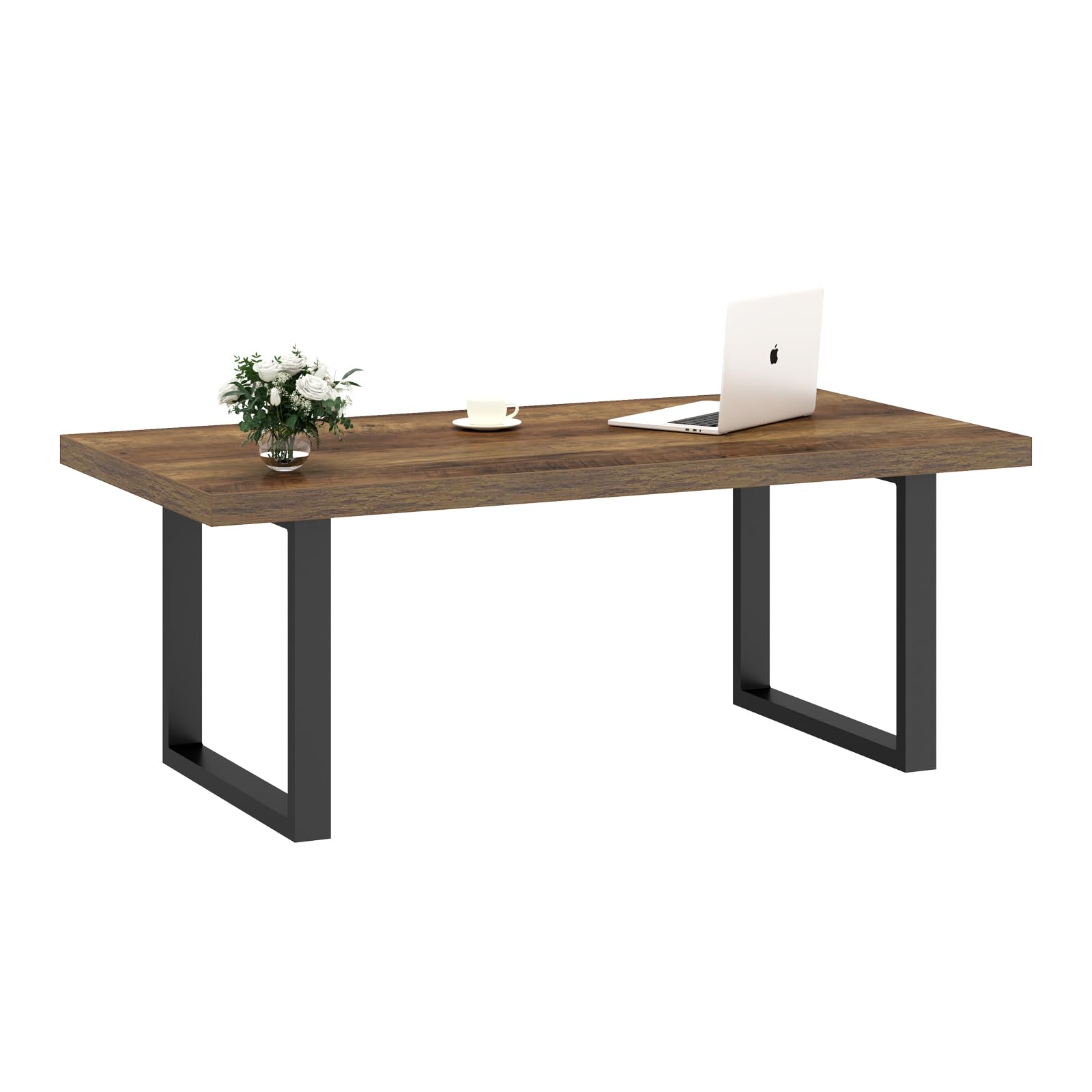 IBF 47" Farmhouse Coffee Table – Modern Industrial Wood and Metal Rectangle Center Table, Simple Rustic Oak Tea Table for Living Room, Bedroom, or Office