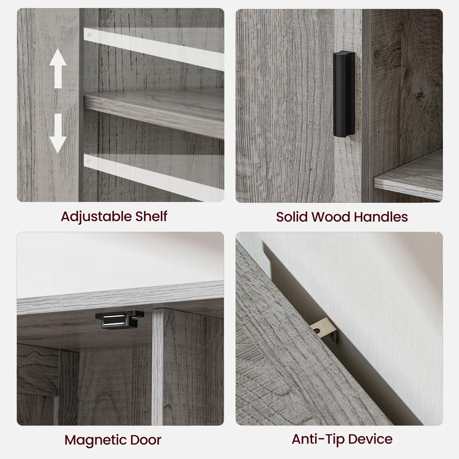 Storage Cabinet with 2 Doors and 4 Adjustable Shelves, Buffet Floor Cabinet for Living Room, Entryway, or Kitchen, Rustic Gray