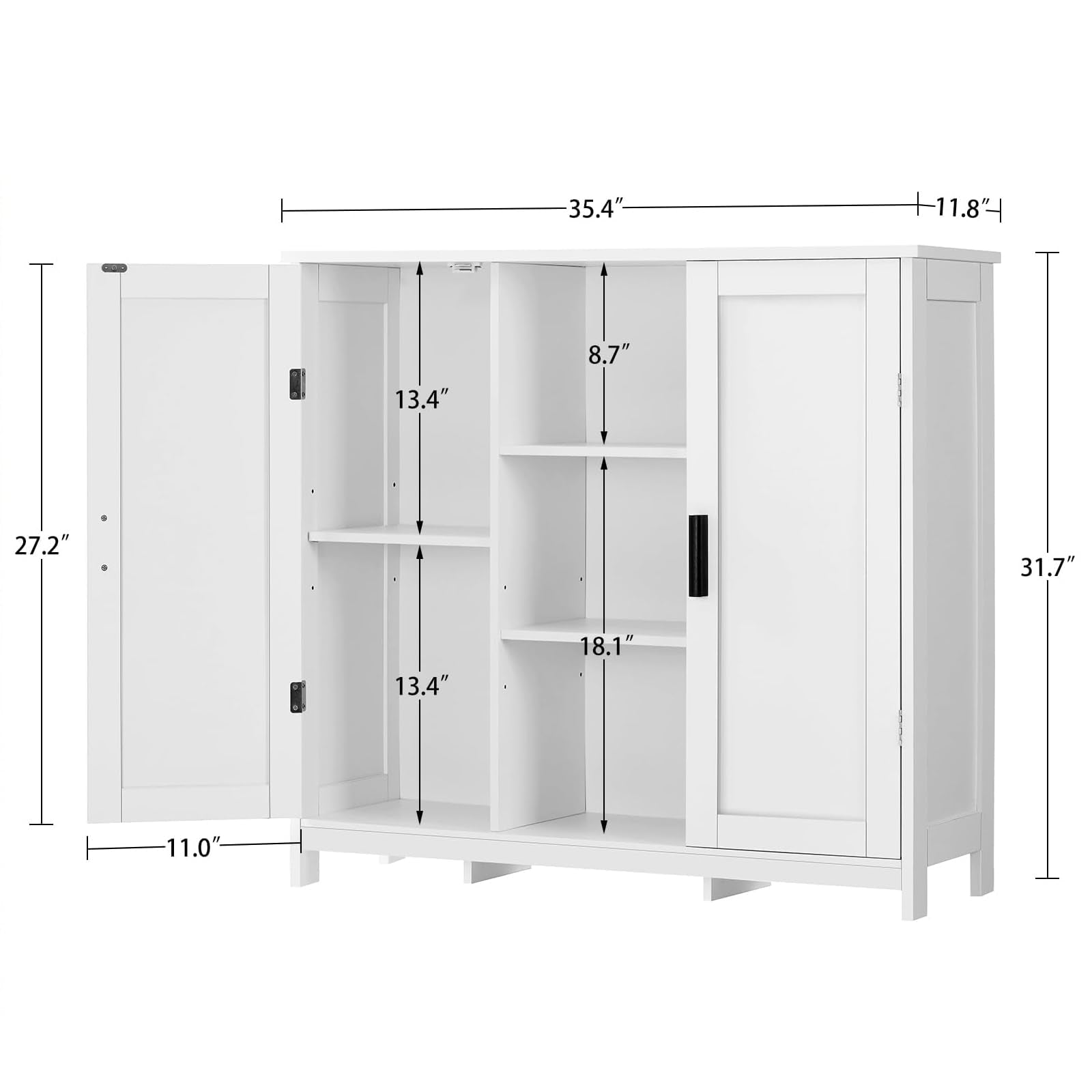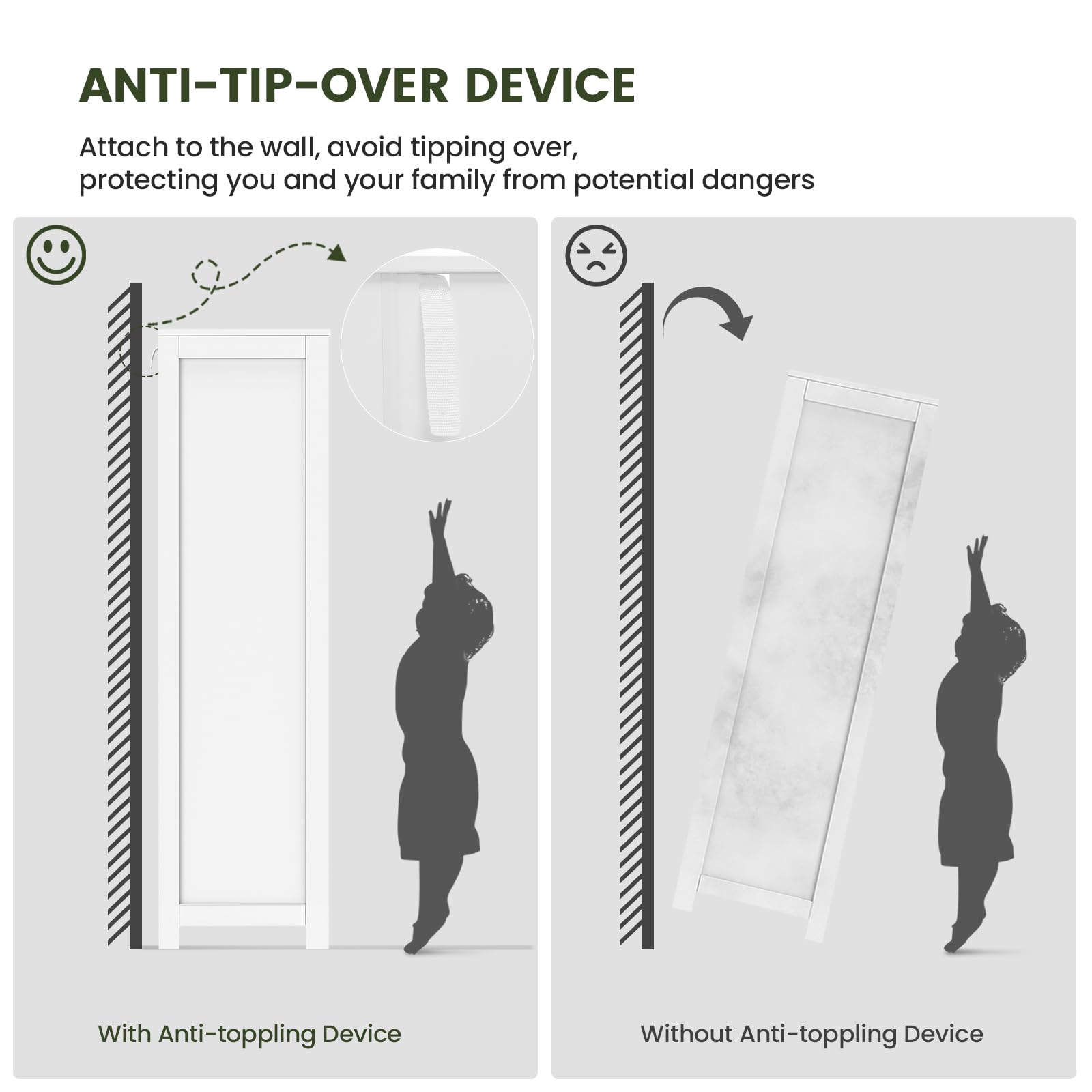 - šØćGood Quality & Safe to UsećMade of high quality engineered wood, this storage cabinet is super stable, no harm and odorless, bring a safe and healthy living environment for you. Well made in eco-friendly waterproof paint, suitable for wet environment. Meanwhile, an anti-tip kit helps secure cabinet to the wall, which can protect the safety of your family.