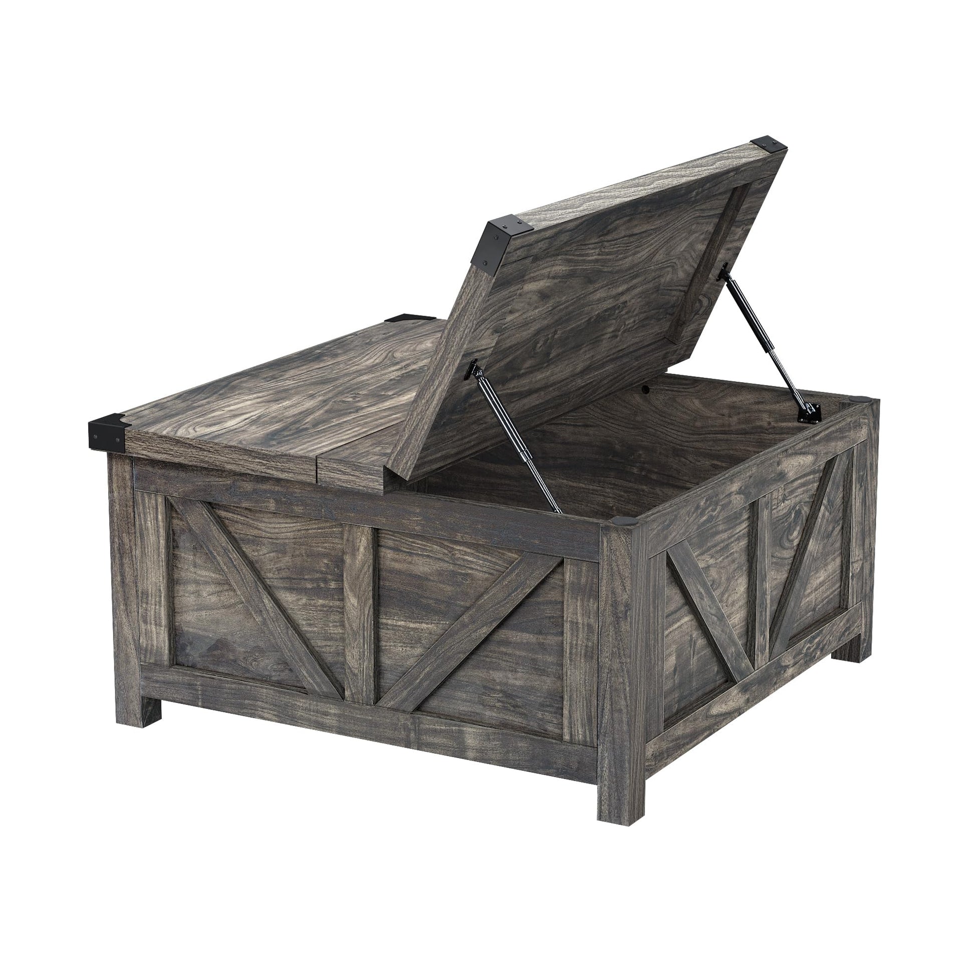 - Farmhouse Charm: Our grey square farmhouse lift top coffee table with storage is crafted from its original wood grain, classic farm barn shape design with metal corners decor to add a retro accent. Its farmhouse-style design complements modern, rustic, industrial, or vintage decor. The unique square shape is just the right size to not only complement your sofa well but also fit well in both small and large spaces.