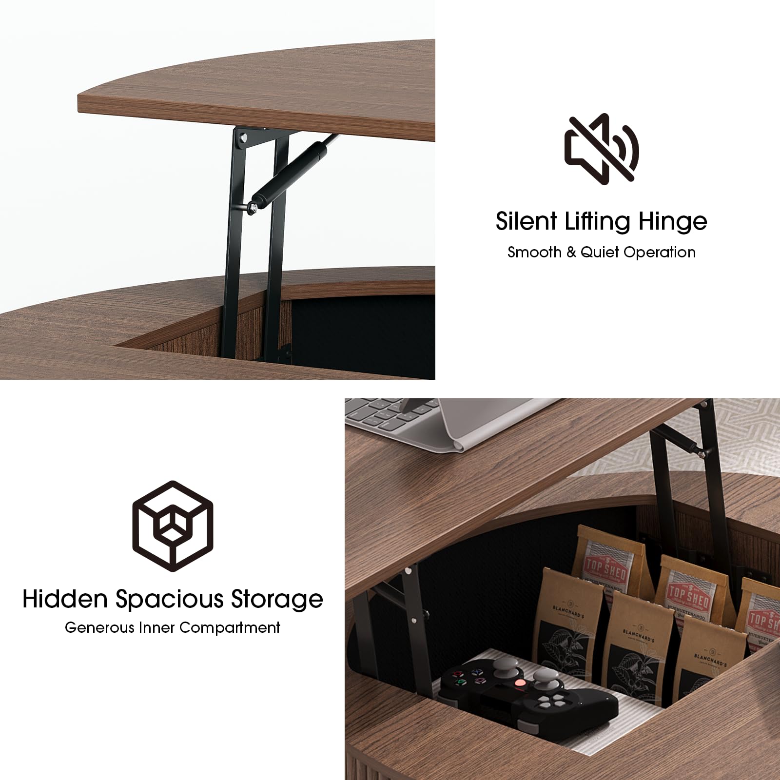 - Lift Top Design: This lift top coffee table features a premium lifting mechanism that operates smoothly and quietly. The tabletop can be raised to 23.4 inches, allowing you to easily work from home, enjoy delicious meals, do crafts, or relax on the sofa while playing games—all with perfect comfort