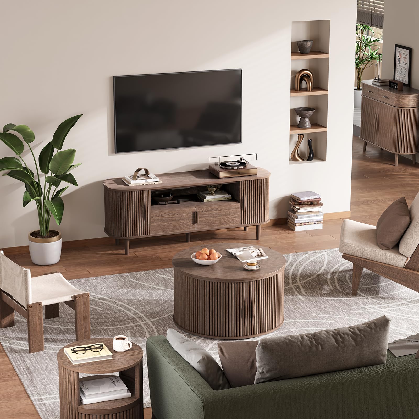 - Modern Mid-Century Style: Designed as a modern coffee table, this piece combines elegant curves with a grooved panel design to create a timeless mid-century look. Its circle coffee table silhouette adds sophistication and charm to any living room