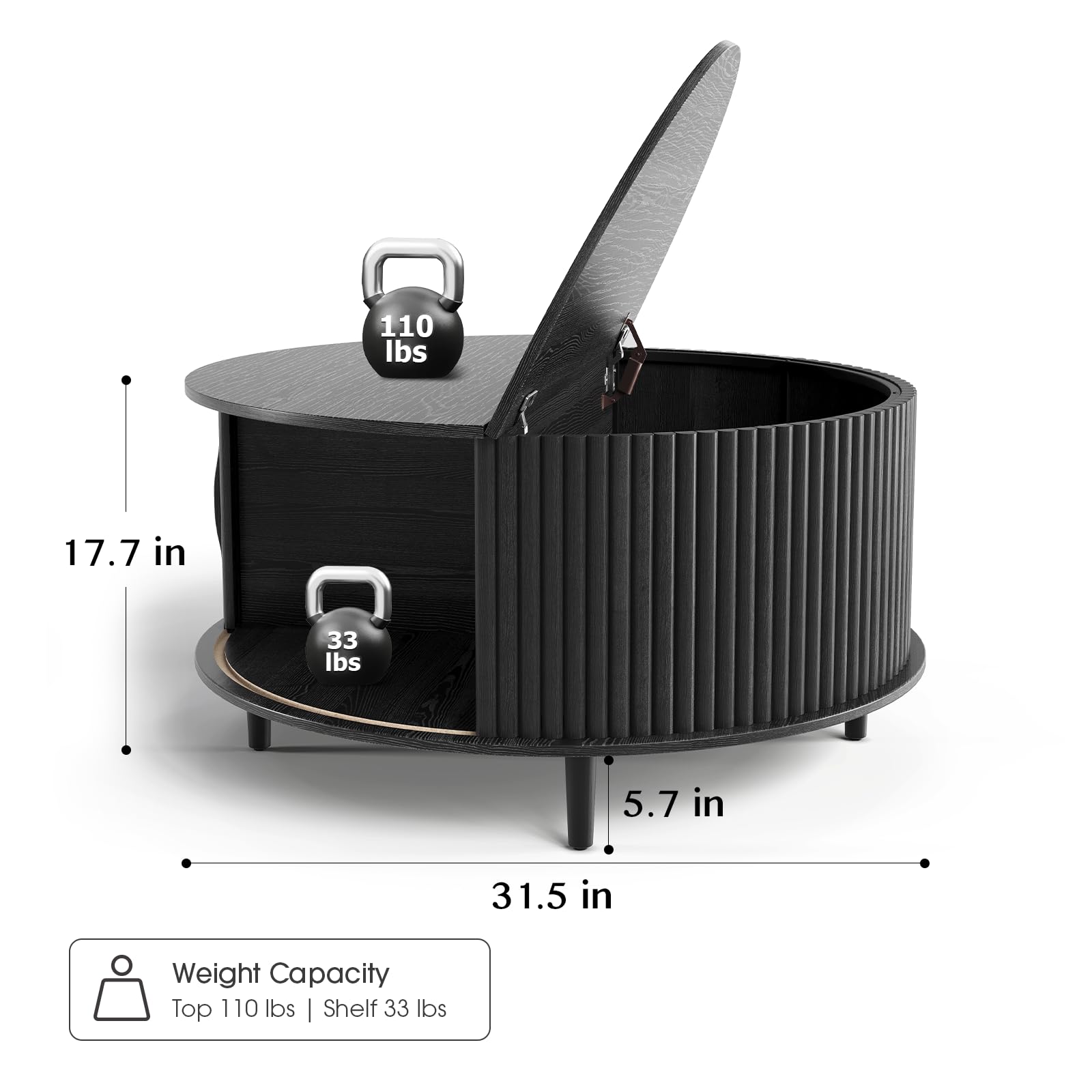 - Space Saving: This 31.5"coffee table is compact in size and adopts a 2-tier structure with hidden storage space inside and open storage space at the bottom,providing you with extra space to store magazines,snacks and trinkets,making your living room more tidy