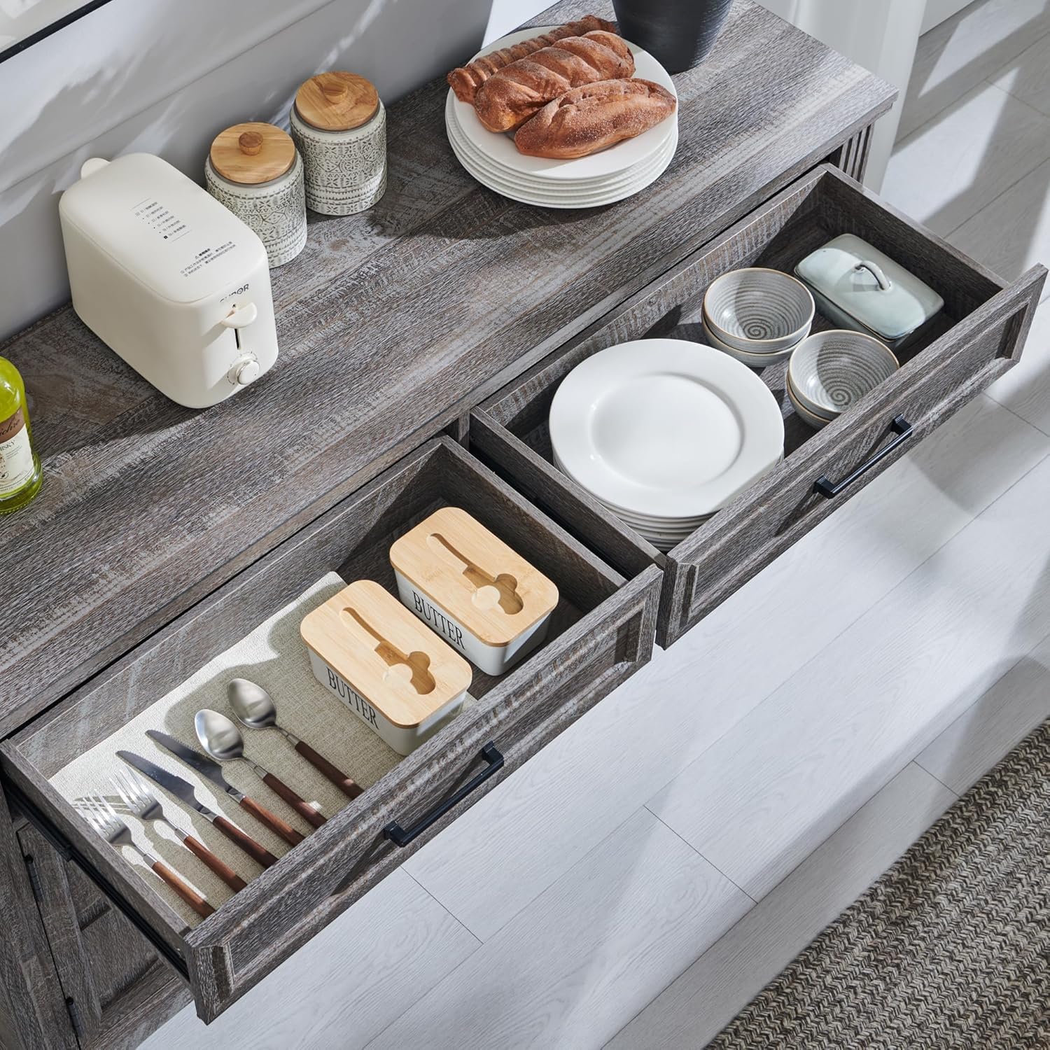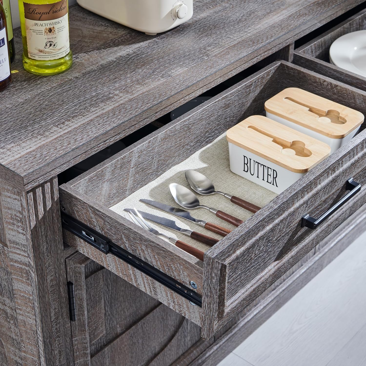 - Stunning Buffet Sideboard: Our Farmhouse Buffet Sideboard Cabinet is designed in a beautiful and elegant farmhouse style, adding a charming and rustic touch to any dining room or living area.