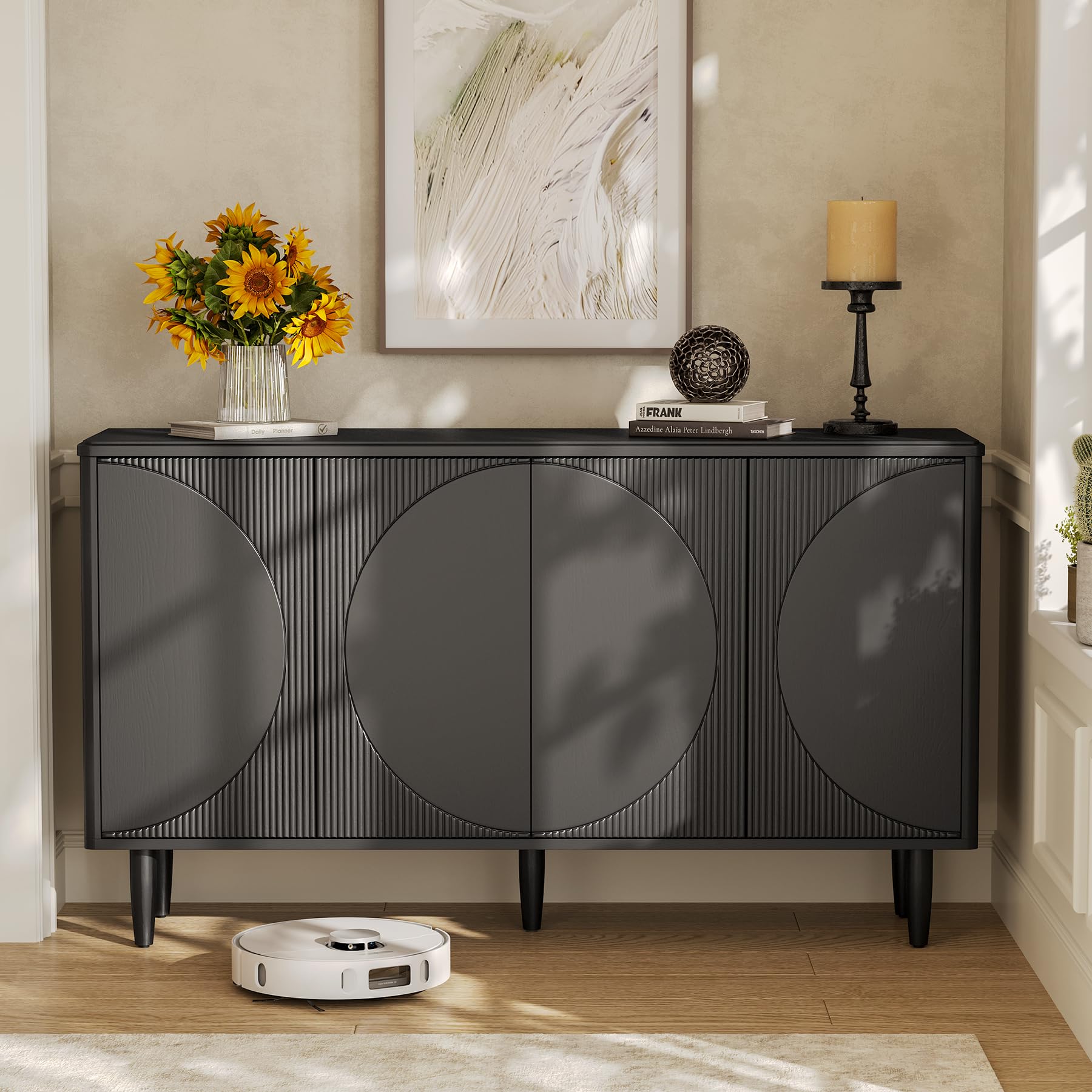 **LITTLE TREE 59" Buffet Cabinet Sideboard with Storage, Modern Sideboard Buffet Table with Doors for Living Room and Dining Room, Black**