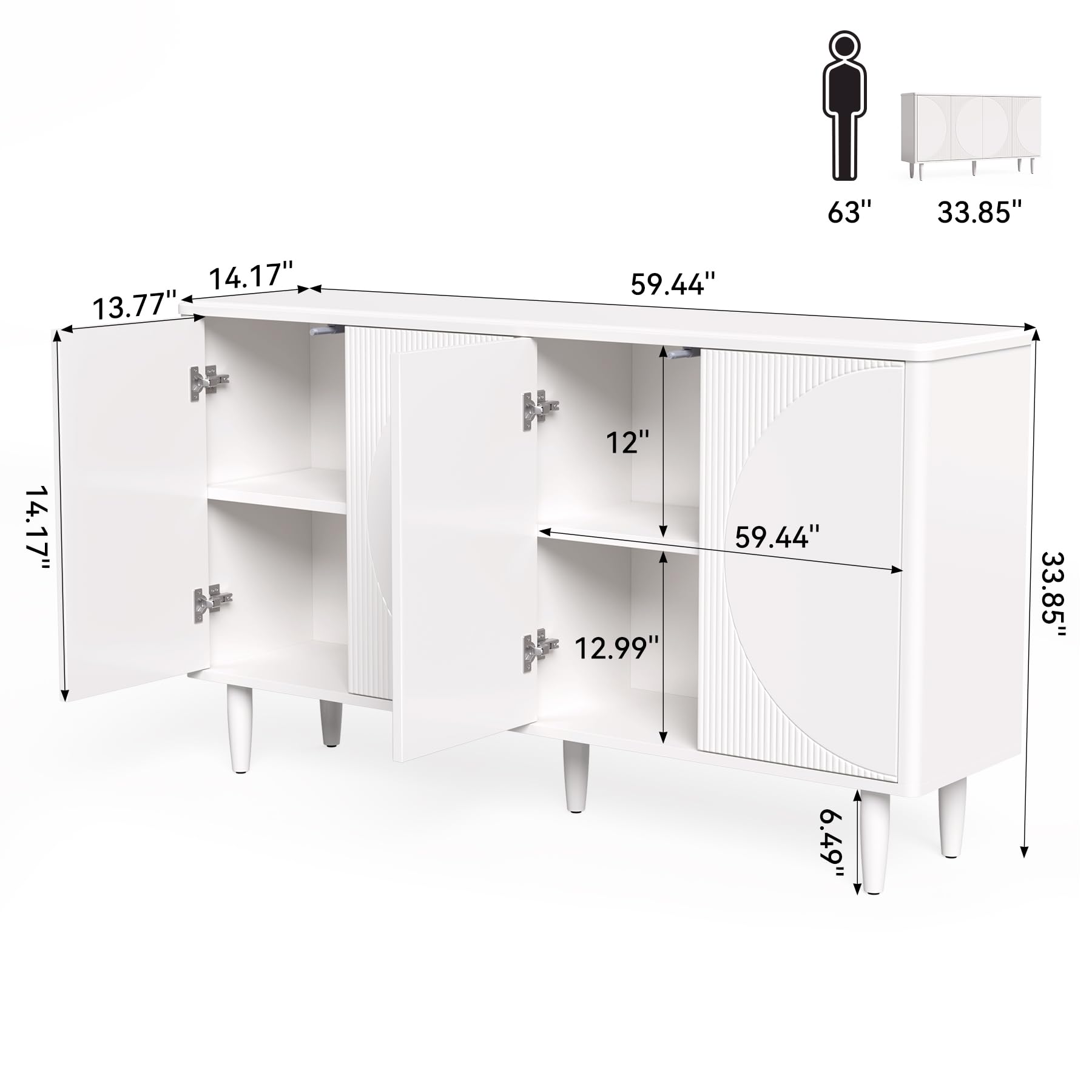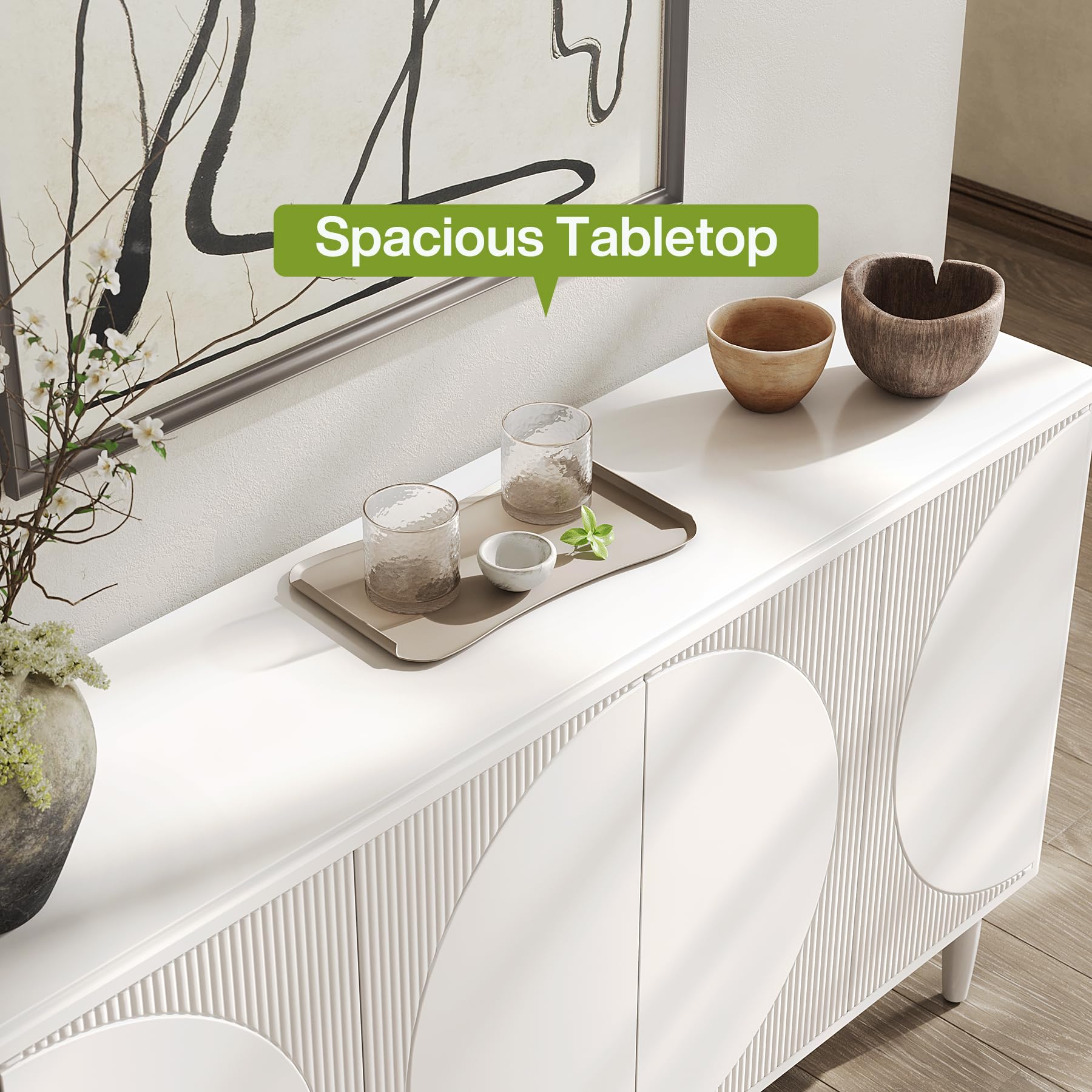 • Chic & Contemporary: Our modern sideboard, with its striking white finish and semicircle patterned doors, elevates the style quotient of your living space, adding a dash of charm to any decor.