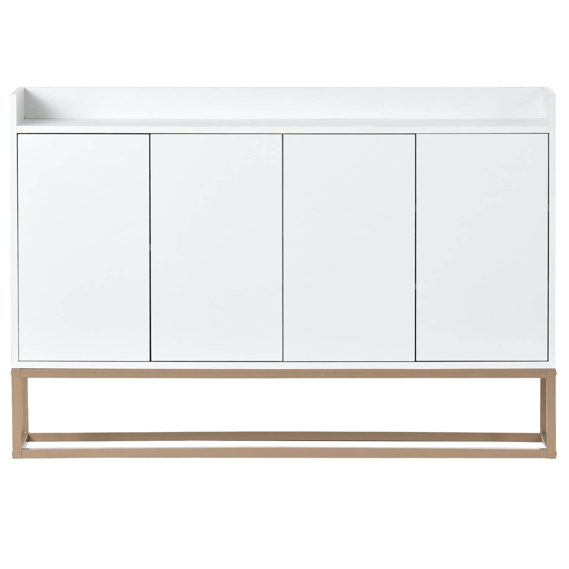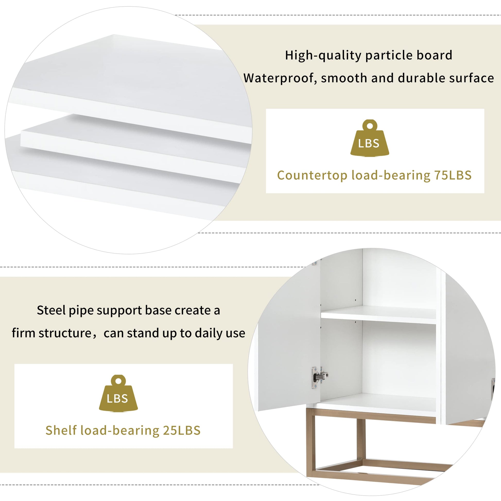 Modern Wood Sideboard Buffet Cabinet with Doors, Adjustable Shelves, and Metal Base, Kitchen Storage for Small Spaces, White