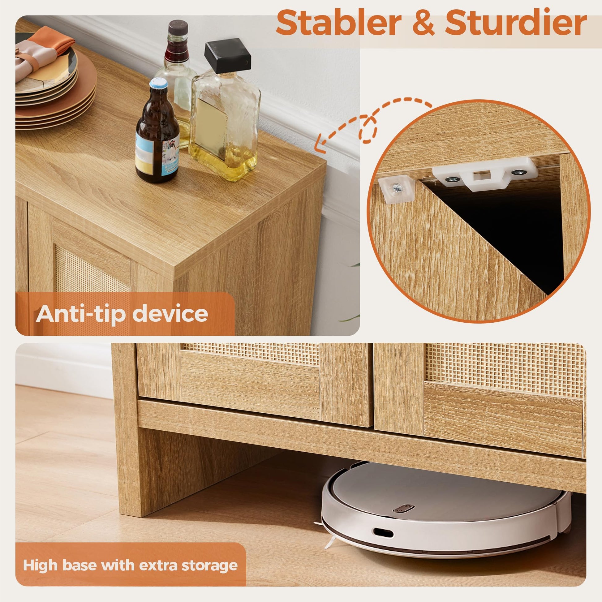 **Rattan Buffet Cabinet with Storage, Sideboard with Doors and Adjustable Shelves, Farmhouse Coffee Bar Station, Modern Wood Cupboard for Kitchen, Living Room, or Dining Room**