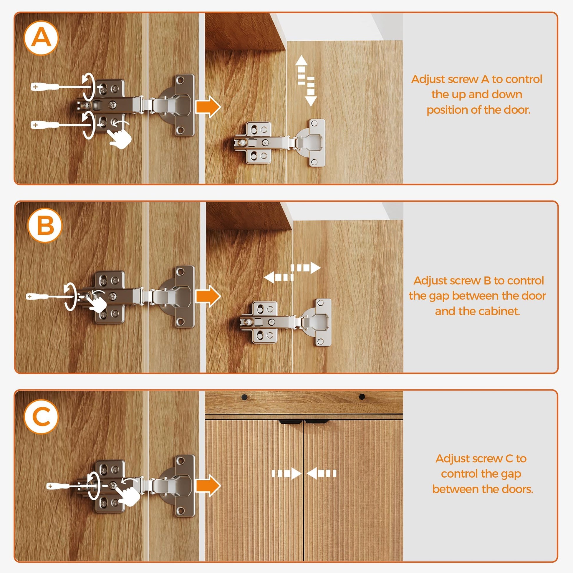 • 【Installation tips】 If the door panel is uneven or has gaps after assembly, refer to the manual to adjust the hinge screws; in addition, firmly fix the small fasteners on the cabinet back panel and tighten them at a 45-degree angle to help increase overall stability.