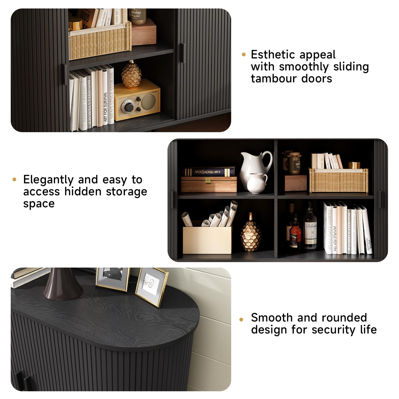 - SPECIALLY DESIGNED: This Sideboard Buffet Cabinet is specially designed with curved edges making it a perfect accent sideboard. The standard sliding groove track for sliding doors provides effortless gliding. This special and innovative storage cabinet is designed to be compact and provide enough storage.