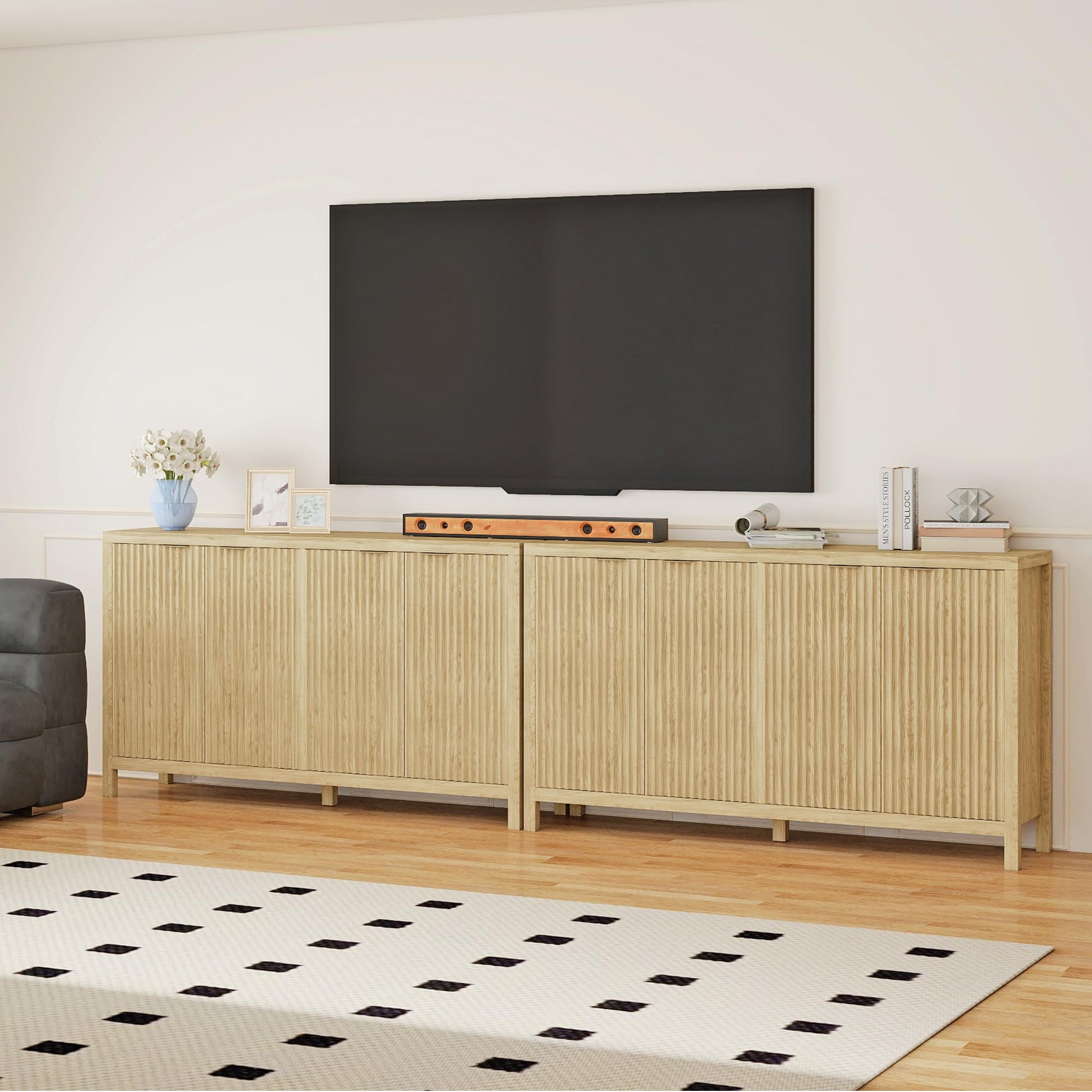- 【Elegant Waveform Fluted】This sideboard cabinet features fluted design on each door with natural oak finish, this fluted sideboard cabinet brings modern elegance to dining rooms, kitchens, or living spaces