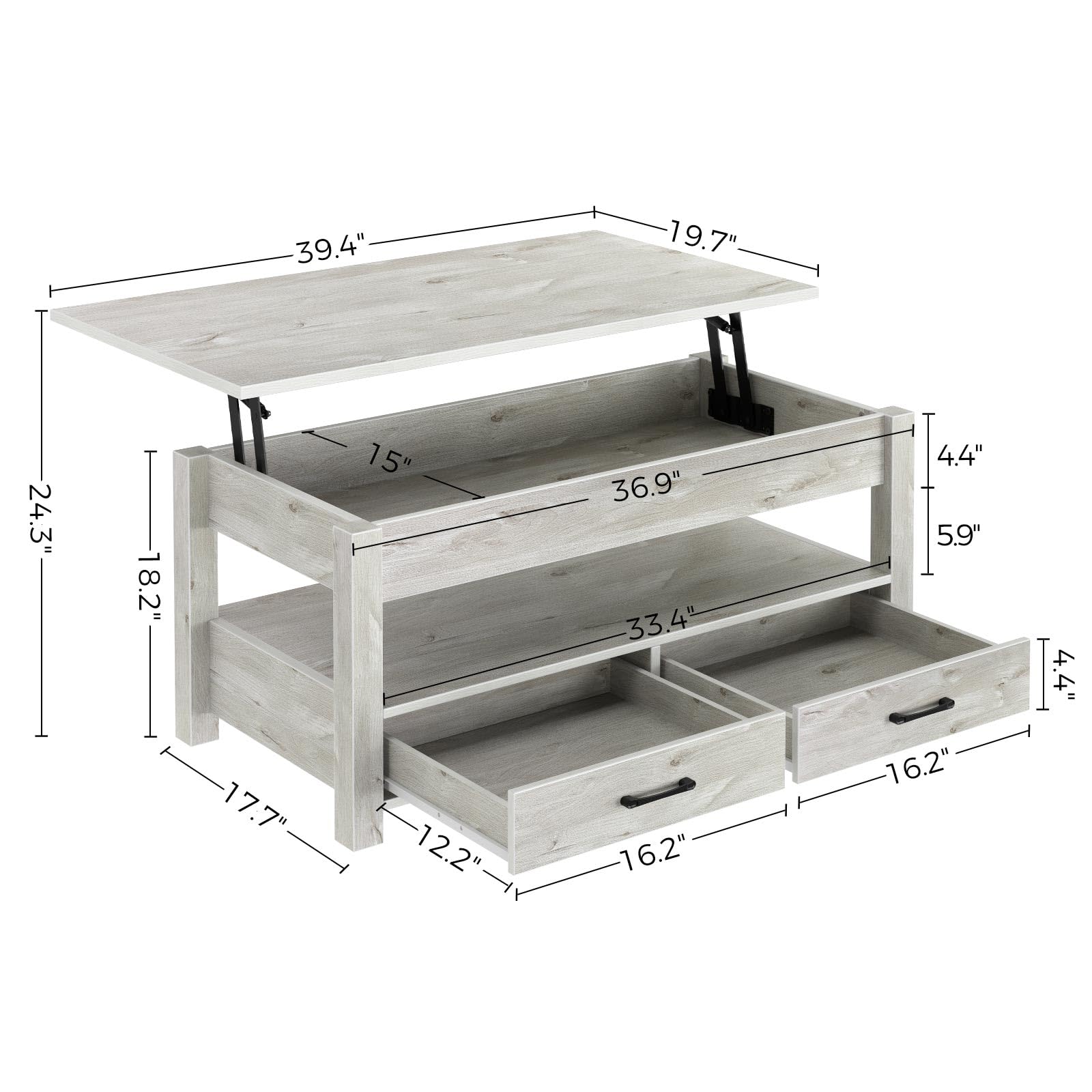 Rolanstar Lift Top Coffee Table with Drawers & Hidden Compartment – Modern Wooden Central Table with Adjustable Lift Tabletop for Living Room, Grey