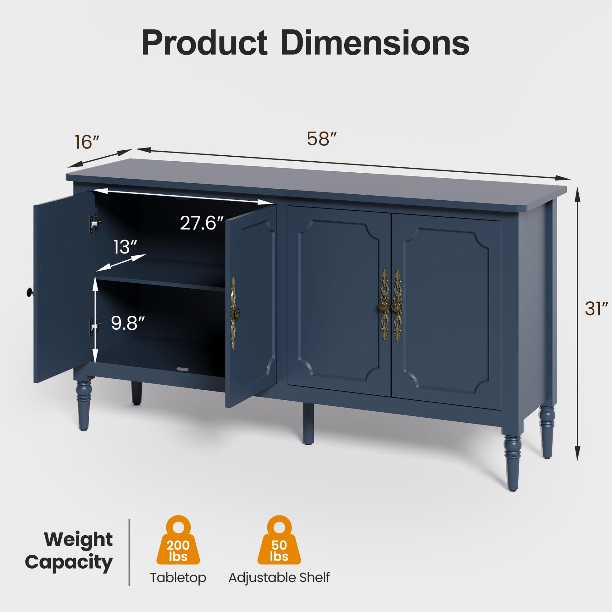 - 【Versatile Multi-Functional Storage】 With dimensions of 58"W x 16"D x 31"H, this cabinet blends seamlessly into 95% of spaces. Buyers transformed it into a TV console, party buffet, entryway organizer, even a home office hero—what Masterpiece will YOU create?