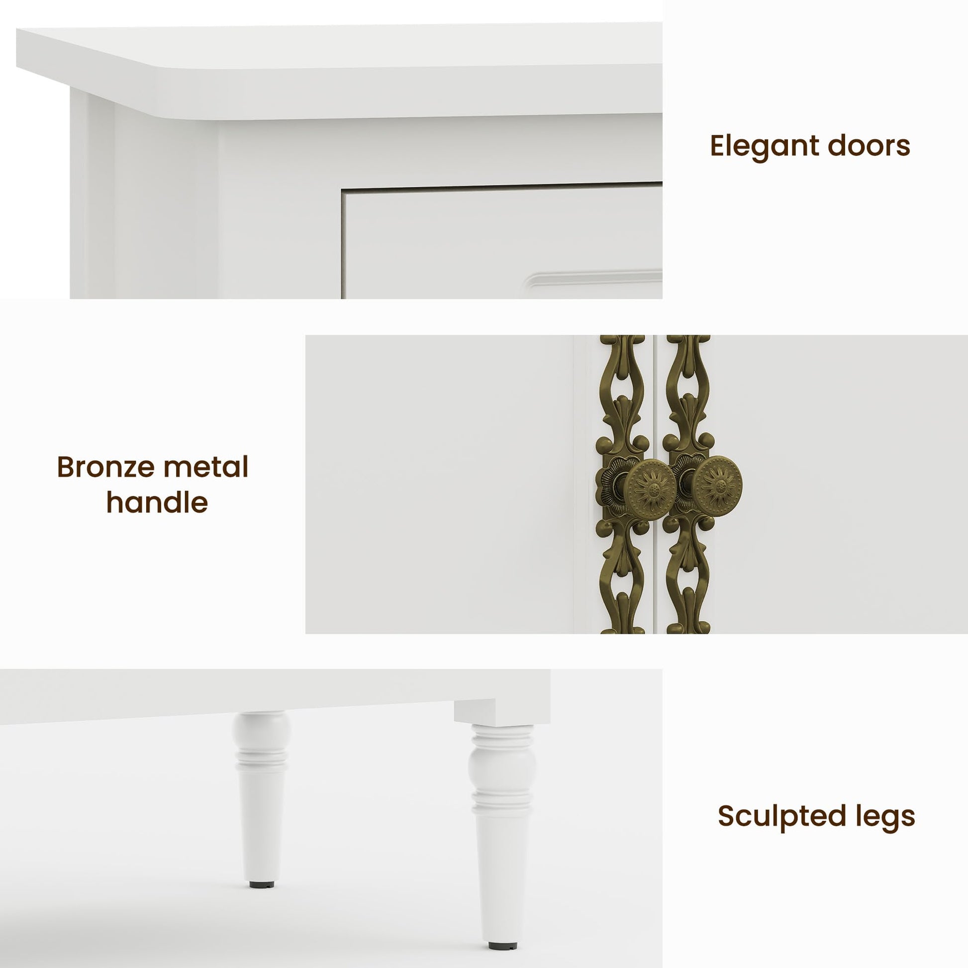 - 【Exuding Elegance & Sophistication】- This decorative cabinet features intricately carved antique bronze handles paired with graceful solid wood legs. Enhanced by a smooth eco-friendly finish and rounded corner detailing, it embodies refined authority from every perspective - whether admired from afar or examined closely, effortlessly elevating your living space with timeless grace and noble charm.