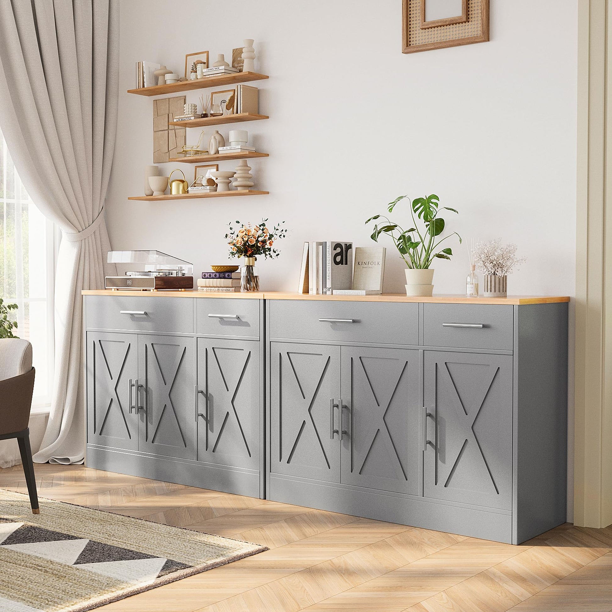 - Modern Farmhouse Design Cabinet: Marring an impressive wood grain surface with white finish, the sideboard buffet with storage perfectly fuses farmhouse flair and classic modern style, which makes it easy to blend with any cottage, contemporary, modern farmhouse and more traditional interiors.