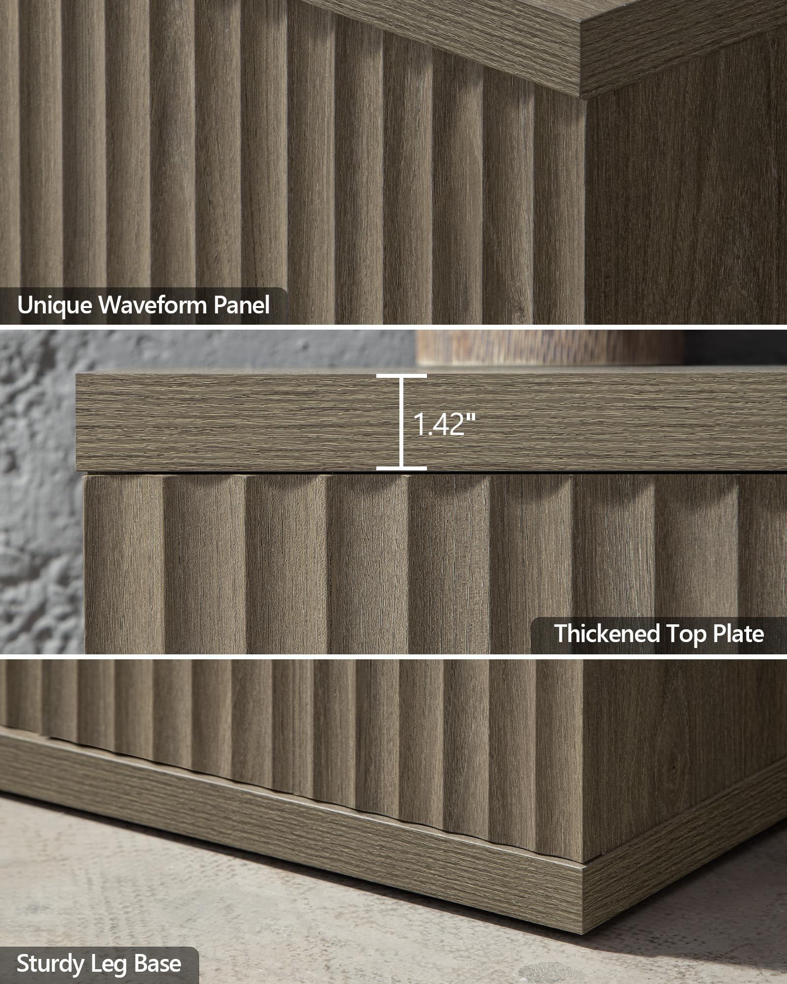 - 【Minimalist & Practical】- The storage cabinet boasts a minimalist profile and doors with a unique waveform panel, setting it apart from ordinary furniture pieces. Equipped with pop-up design doors that offer easy access to stored items while maintaining a sleek and seamless appearance. This distinctive design adds a touch of sophistication and style to your living space, enhancing the overall aesthetic appeal of your home decor.