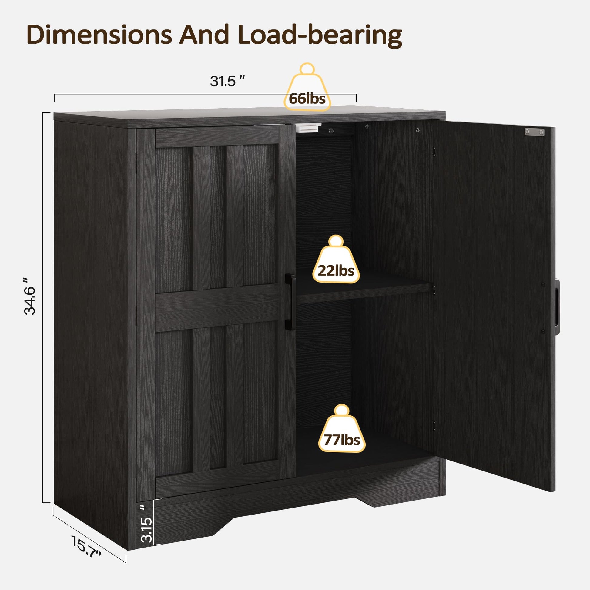 - [Ample Storage Space] Designed with two doors, a spacious top, and two roomy bottom cabinets, this sideboard storage cabinet offers plenty of space to keep your essentials organized and your space clutter-free. The right cabinet features a 3-level adjustable shelf with a 2.5" height range, allowing you to customize the storage to fit your needs.