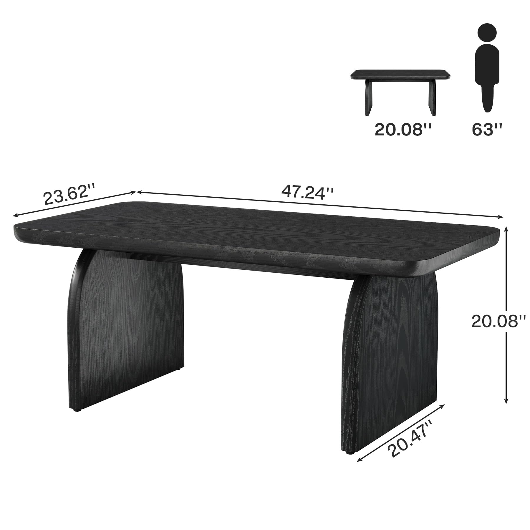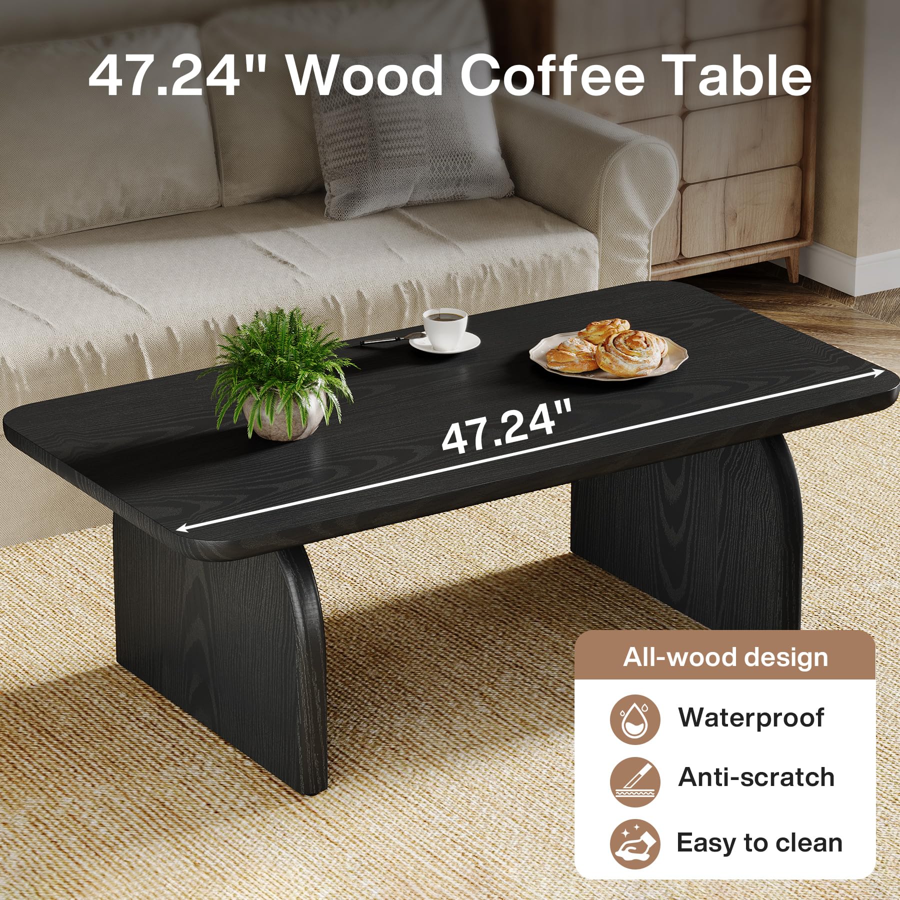 Rectangle Wood Coffee Table, 47-Inch Farmhouse Accent Center Table with Sturdy Base and Rounded Corners, Black