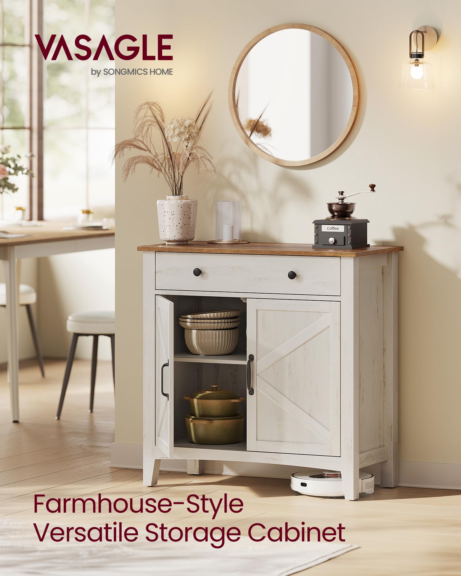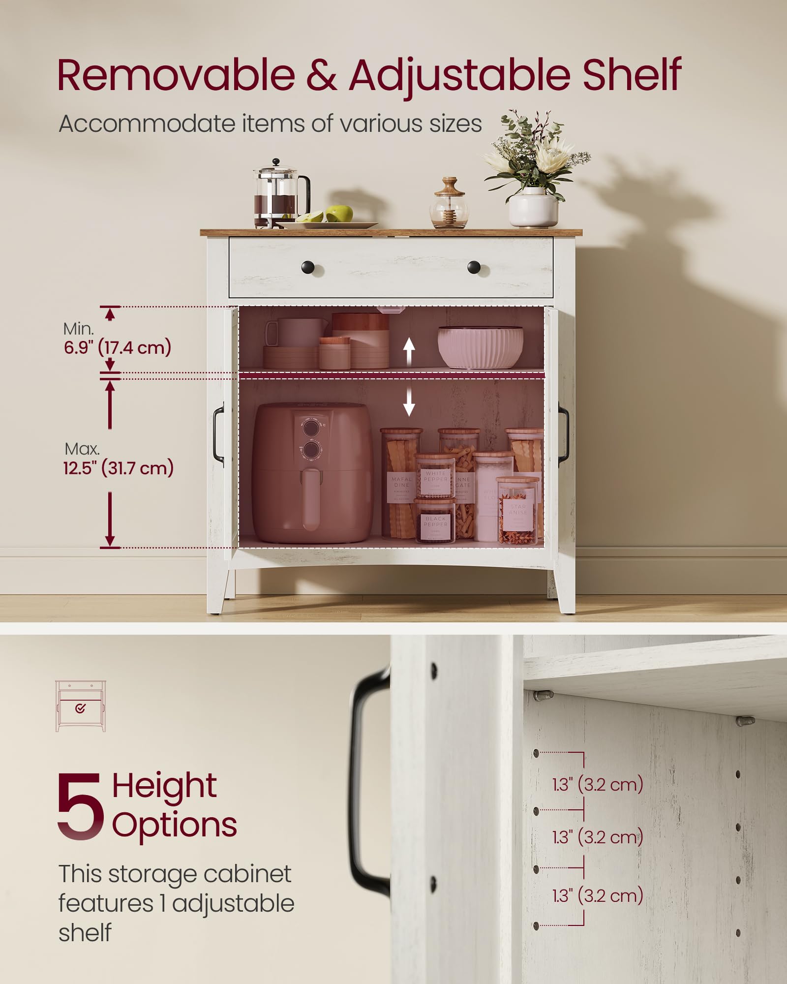 **Buffet Cabinet, Coffee Bar Cabinet with Drawer, Adjustable Shelf, Sideboard Storage with Cable Hole and Drawer Divider, Rustic White and Honey Brown**