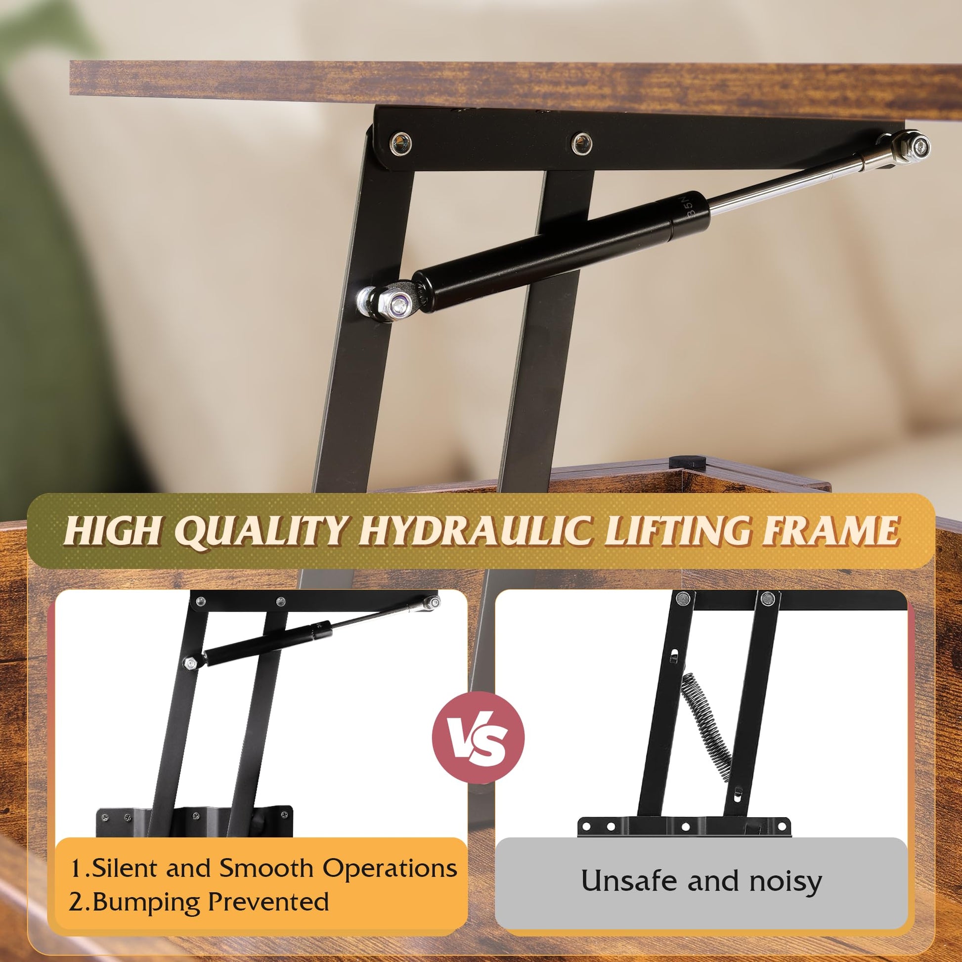 • 【Quality Lift Mechanism】The high-quality hydraulic lifting mechanism on this coffee table offers solid support, allowing you to effortlessly lift the top and lower it slowly and safely, preventing any accidental pinches for you and the kids while in use.