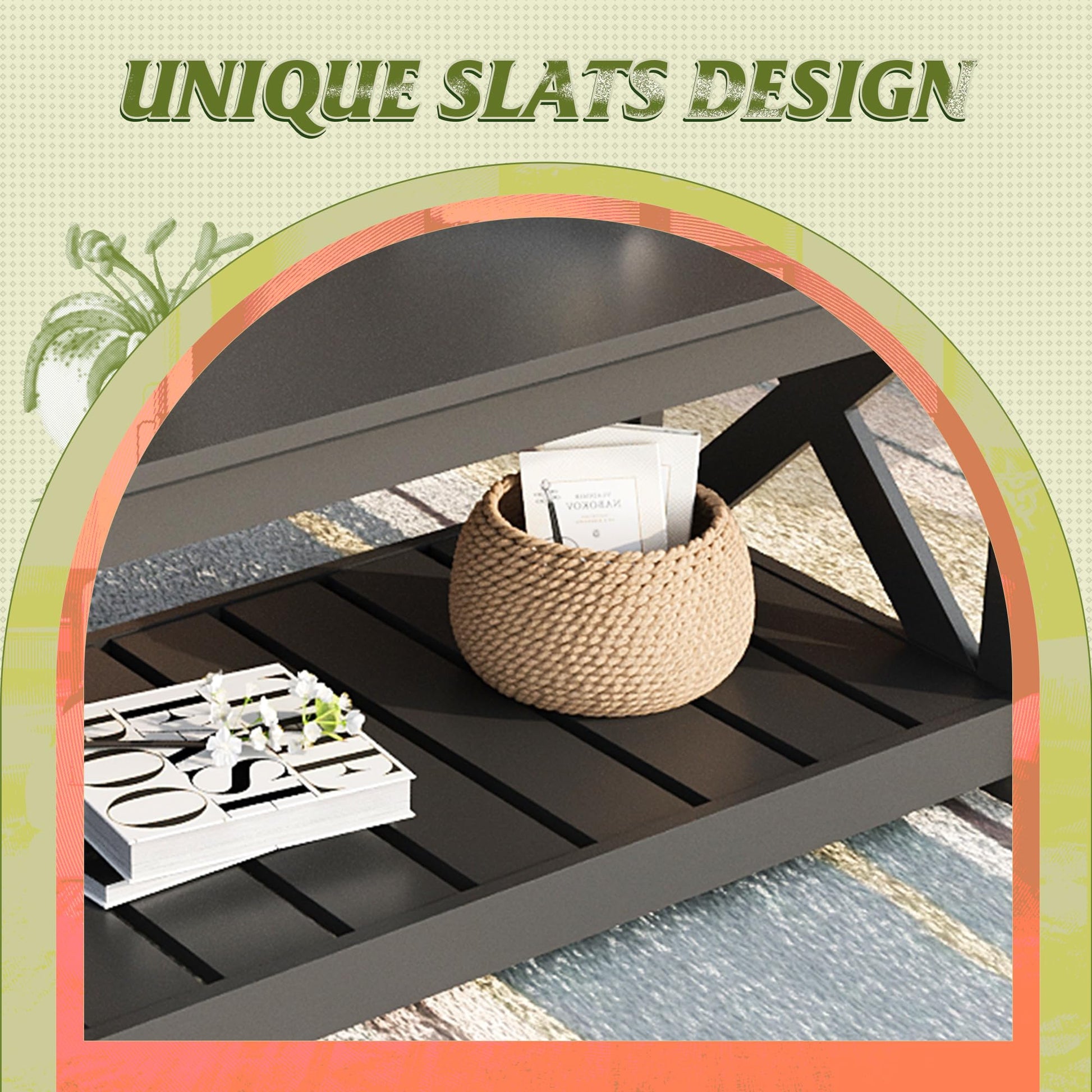 • 【Spacious 2-Tier Storage Space】The wide black coffee table top and slatted bottom shelf provide ample space for decor, books, snacks, or games—keeping your living area tidy and stylish