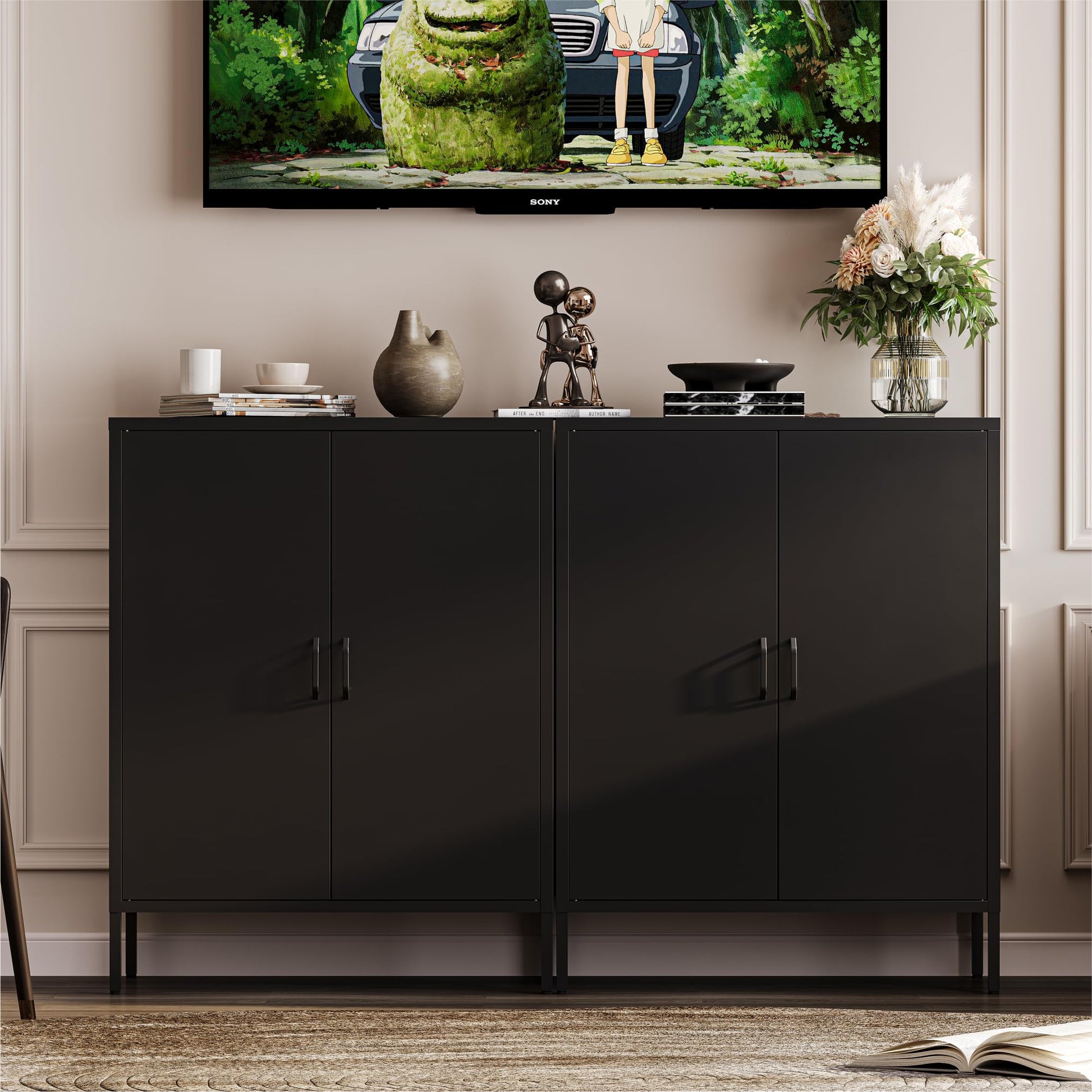 - [Secure & Reliable]Metal storage cabinets have added anti-tip design, allowing them to be securely fixed to the wall. This prevents the cabinets from tipping forward due to heavy items, ensuring the safety of you and your family